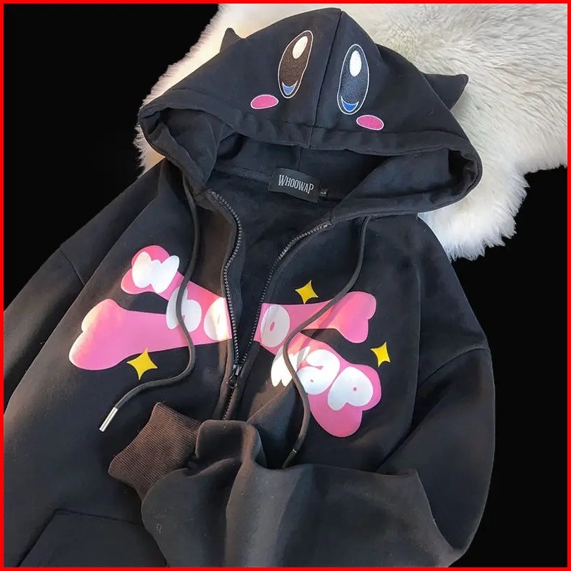 Vallina Outfit - Whoo Wap Zip Jacket Hoodie Cutes Outerwear Remaja Wanita Korean Style Premium