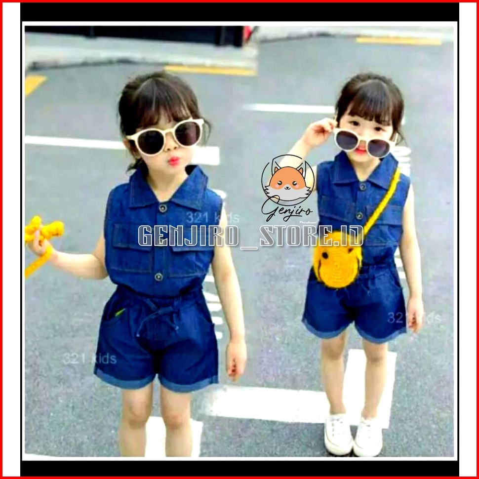 Genjiro Store.id Setelan Denim Korean Untuk Anak Perempuan Usia 6bulan - 4tahun