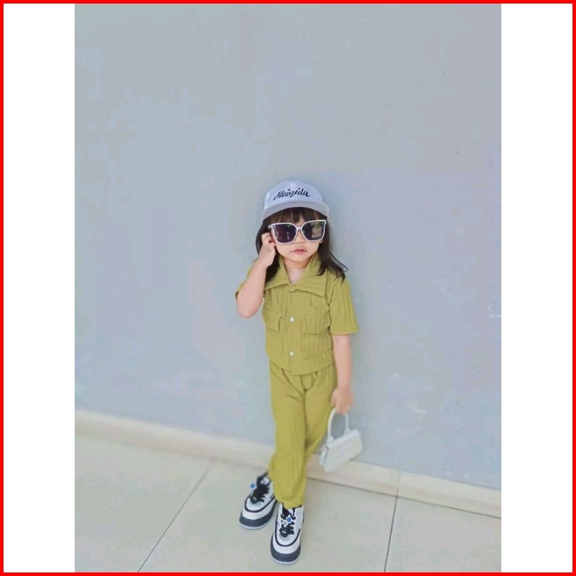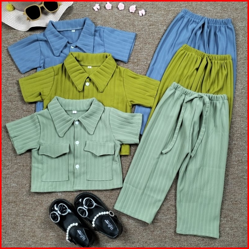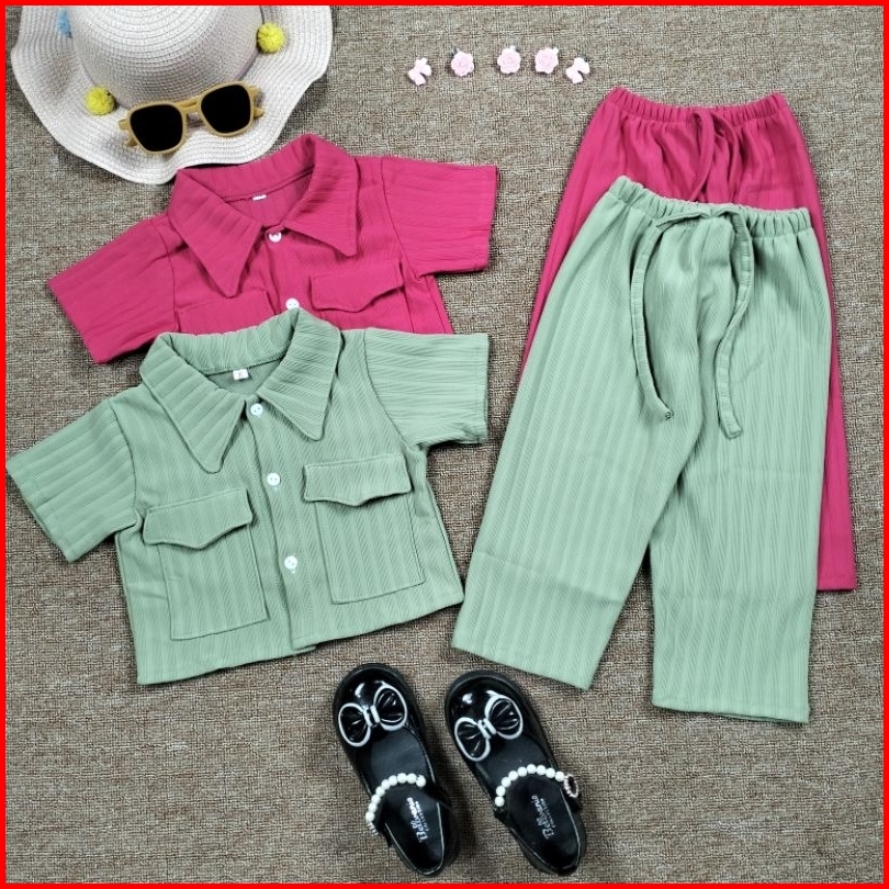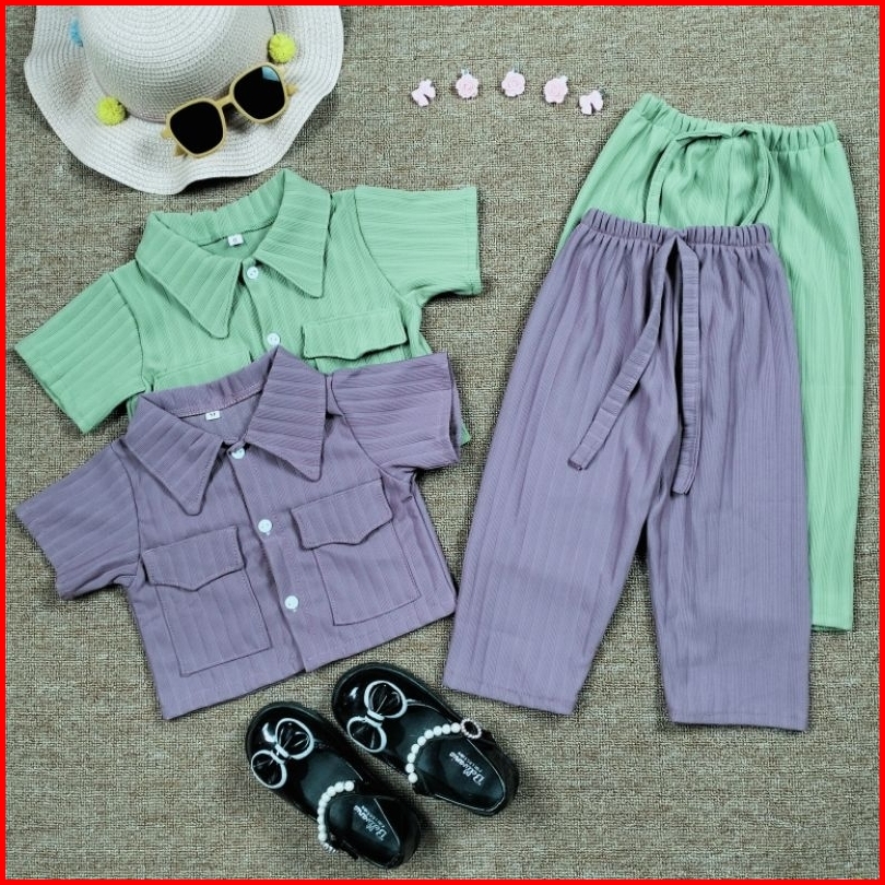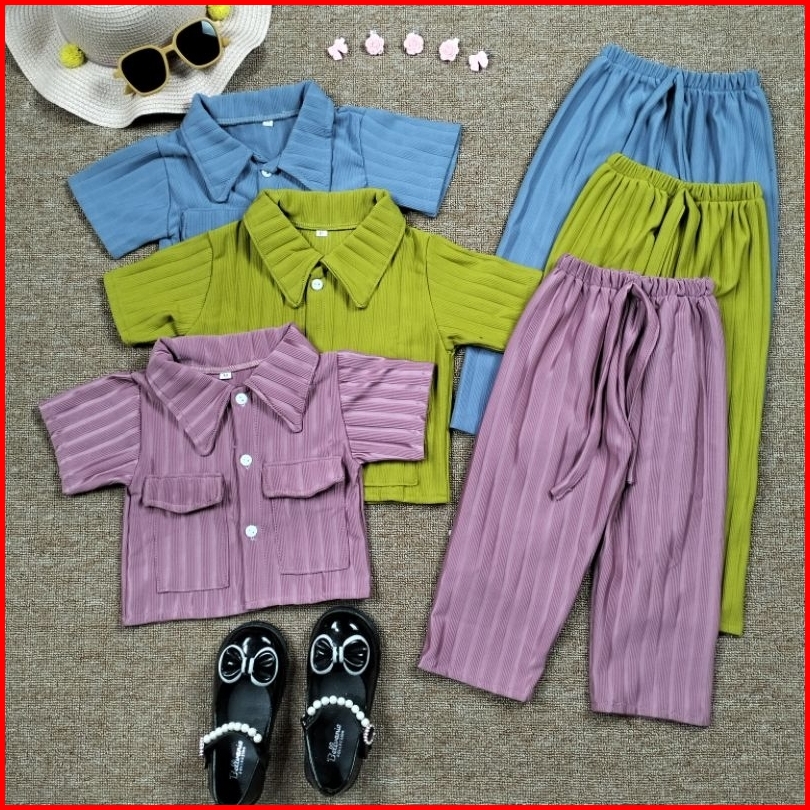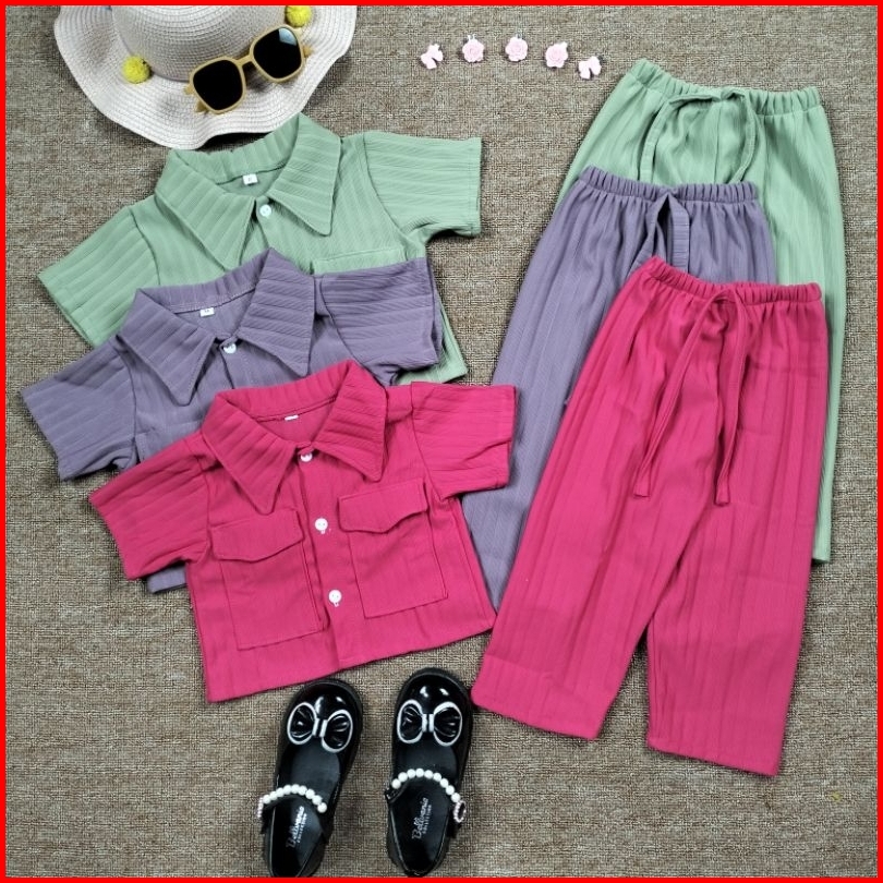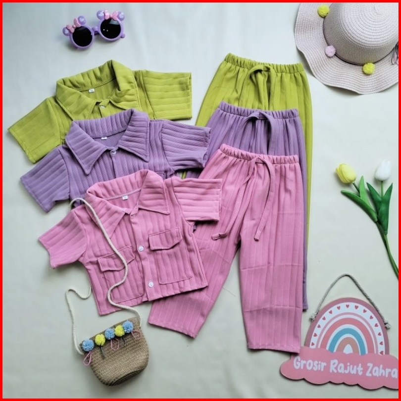 Baju Setelan Anak Perempuan Crop Knit Hornet Viral Baju Kemeja Anak 1-9tahun