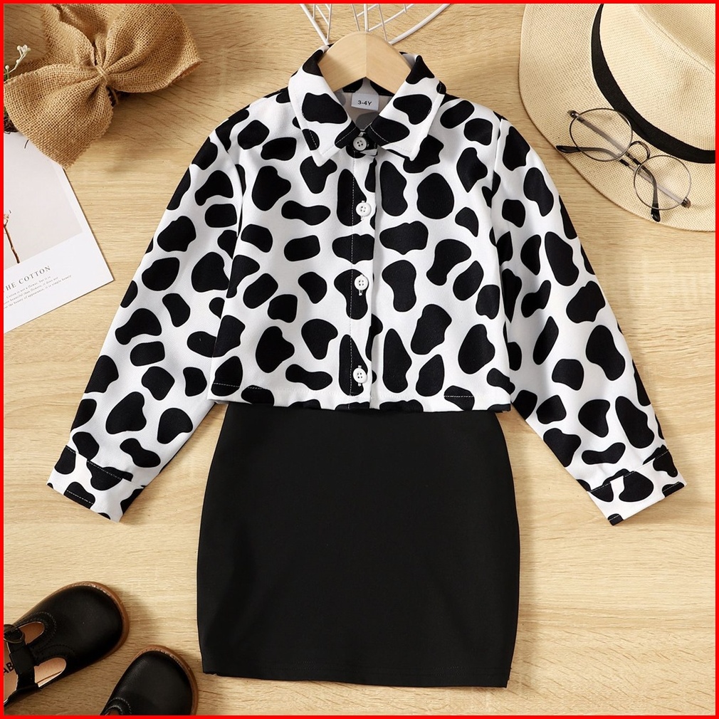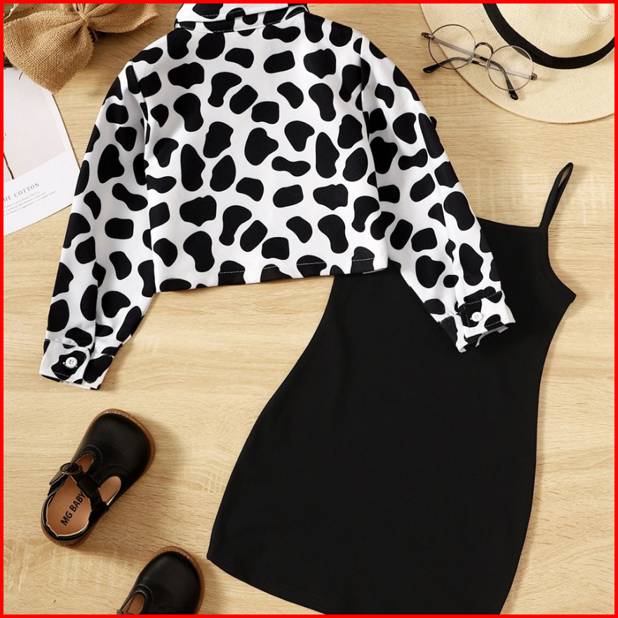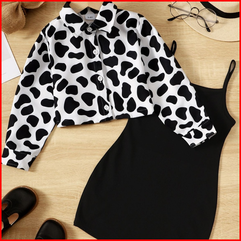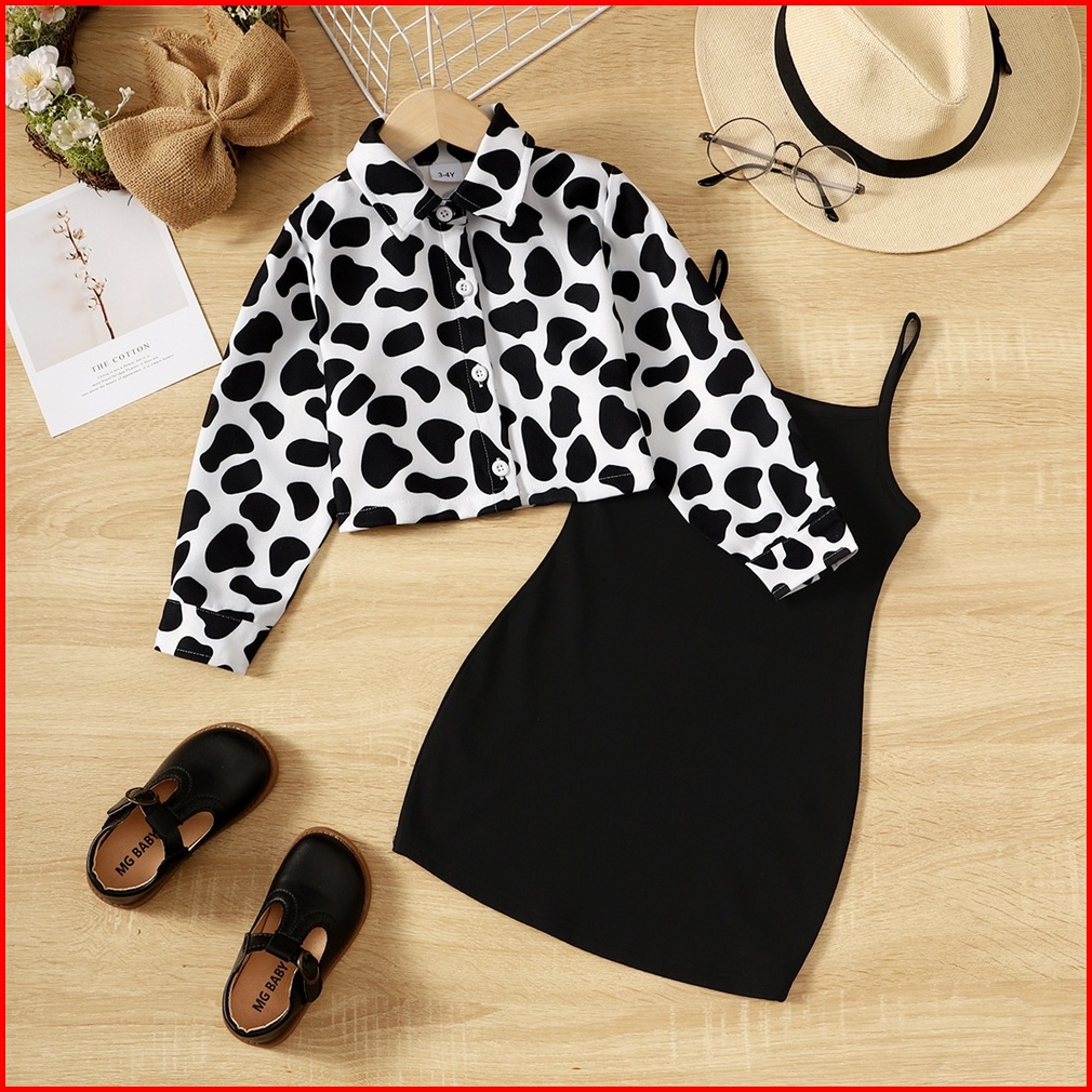 Haasya Kids 1-8 Tahun Baju Anak Perempuan Kids Baju Baby Girl Daily Clothes Set Strap Dress Long Sleeve Jacket Lovely 2p