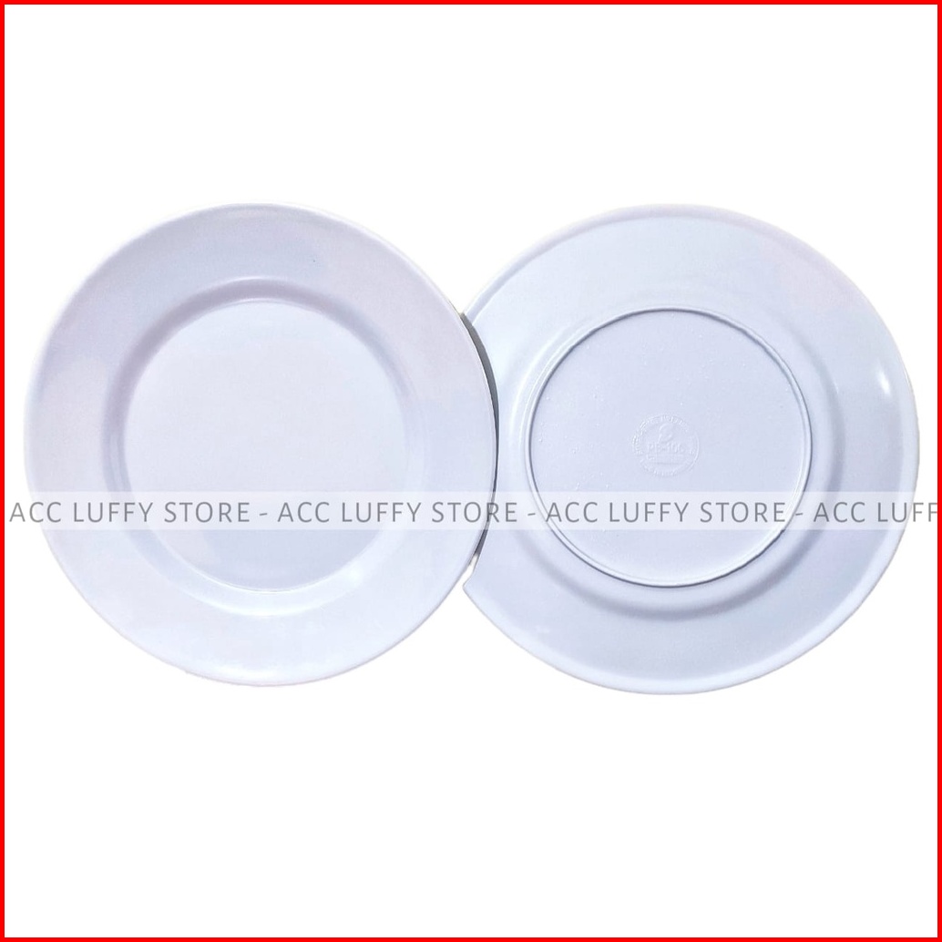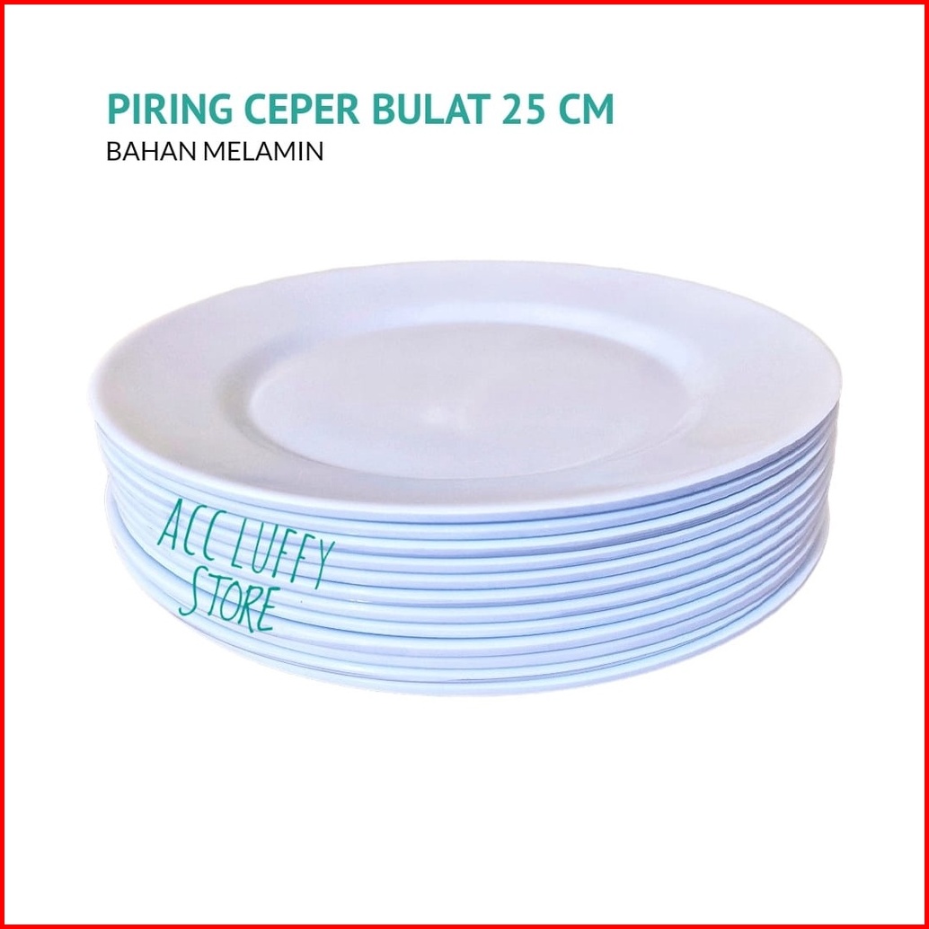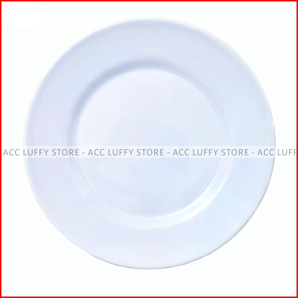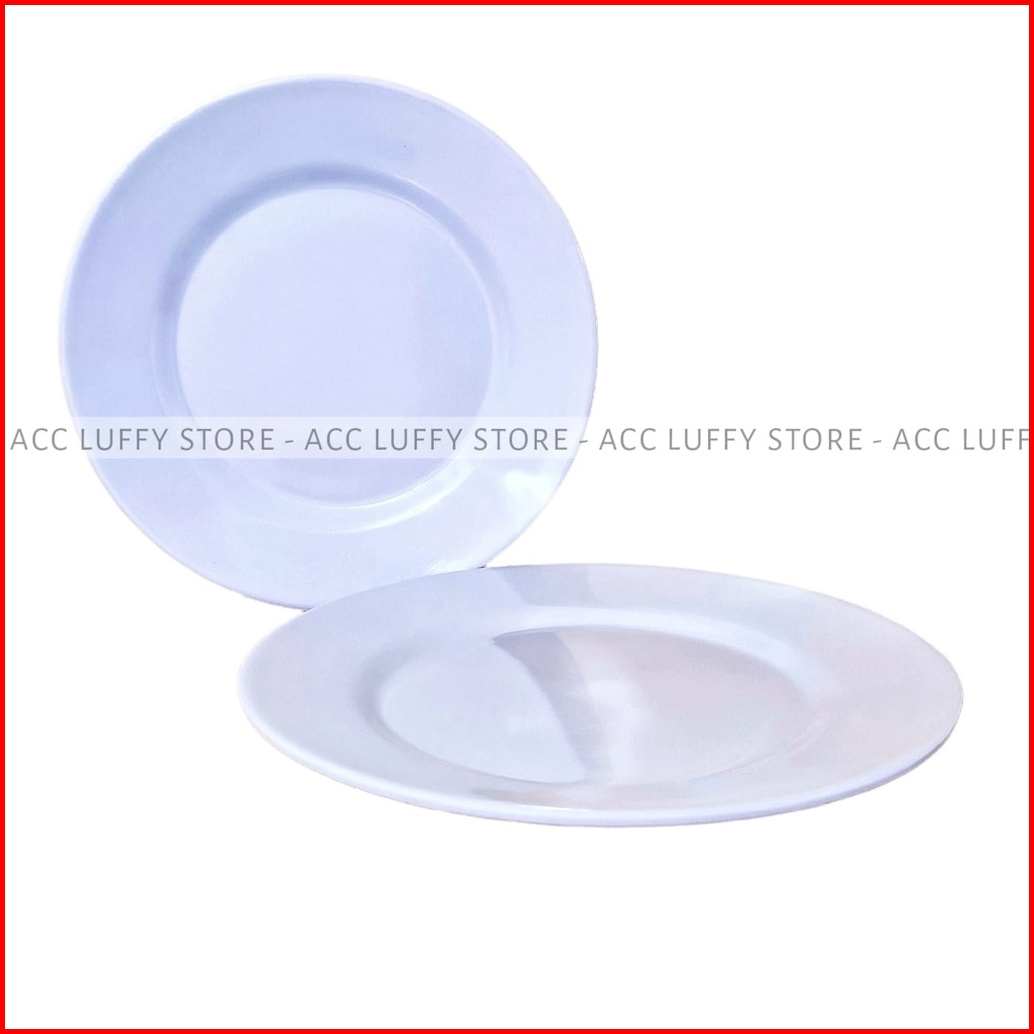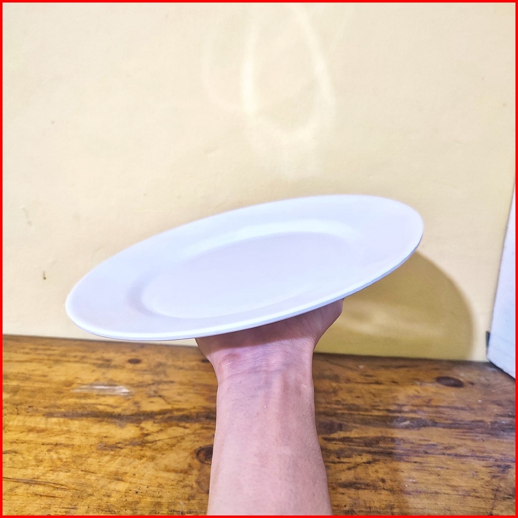 Satu Lusin 12 Pcs Piring Prasmanan - Piring Melamin Bulat Ceper Besar - Piring Melamin Ceper 25cm - Piring Plate Putih -