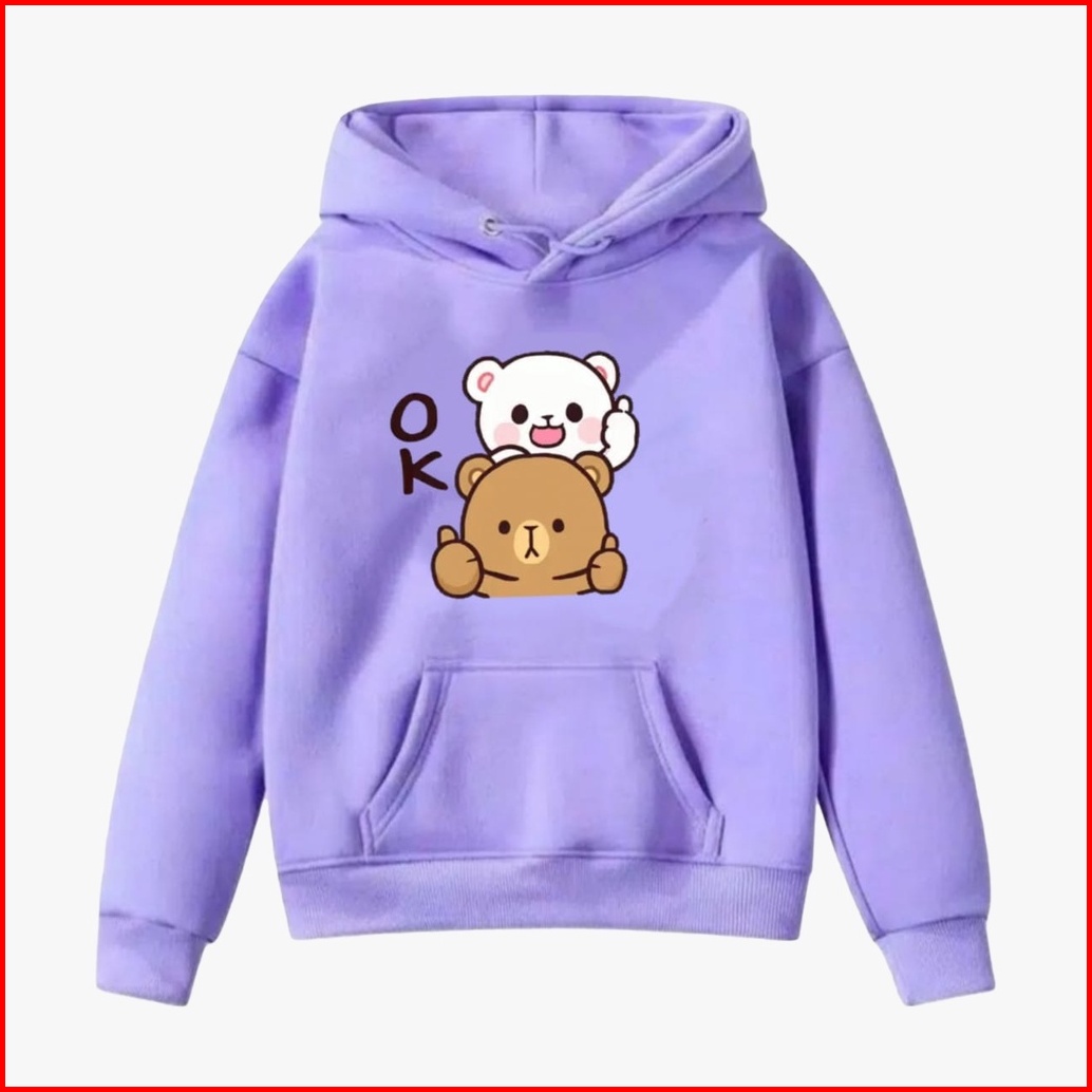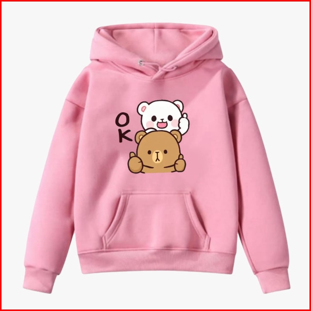 Sweater Hoodie Anak Perempuan Ok Panda 6-12 Tahun Kualitas Premium