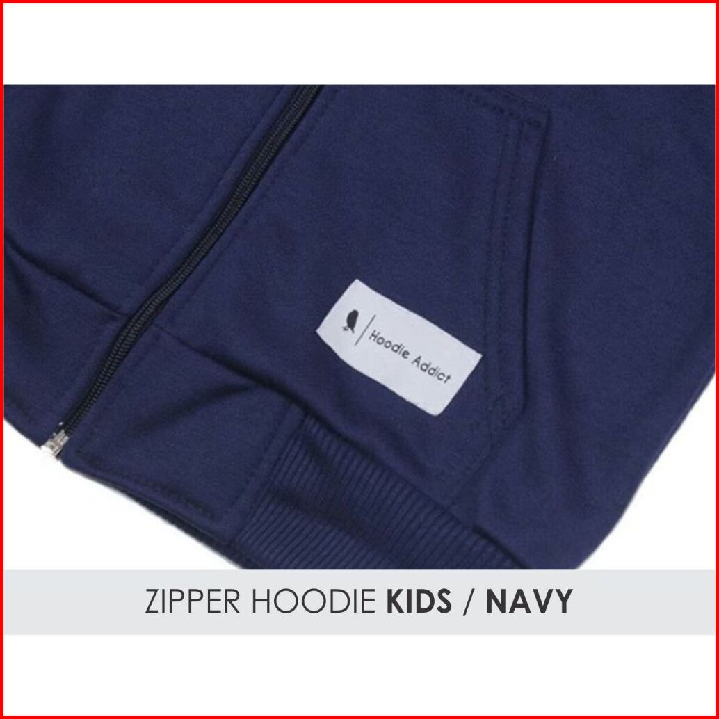 Hoodie Addict - Zipper Anak Unisex Warna Navy Laki-laki Perempuan Premium Original Tebal