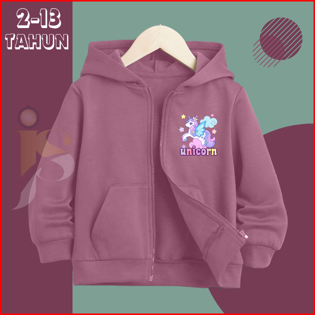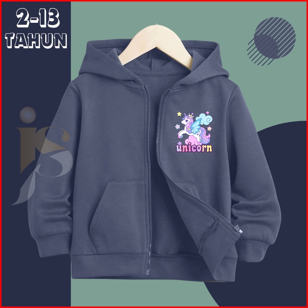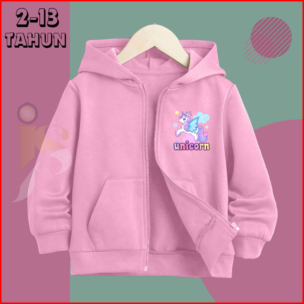 Jaket Hoodie Zipper Anak Perempuan Usia 3 4 5 6 7 8 9 10 11 12 13 Tahun Jacket Unicorn Anak Cewek Terbaru