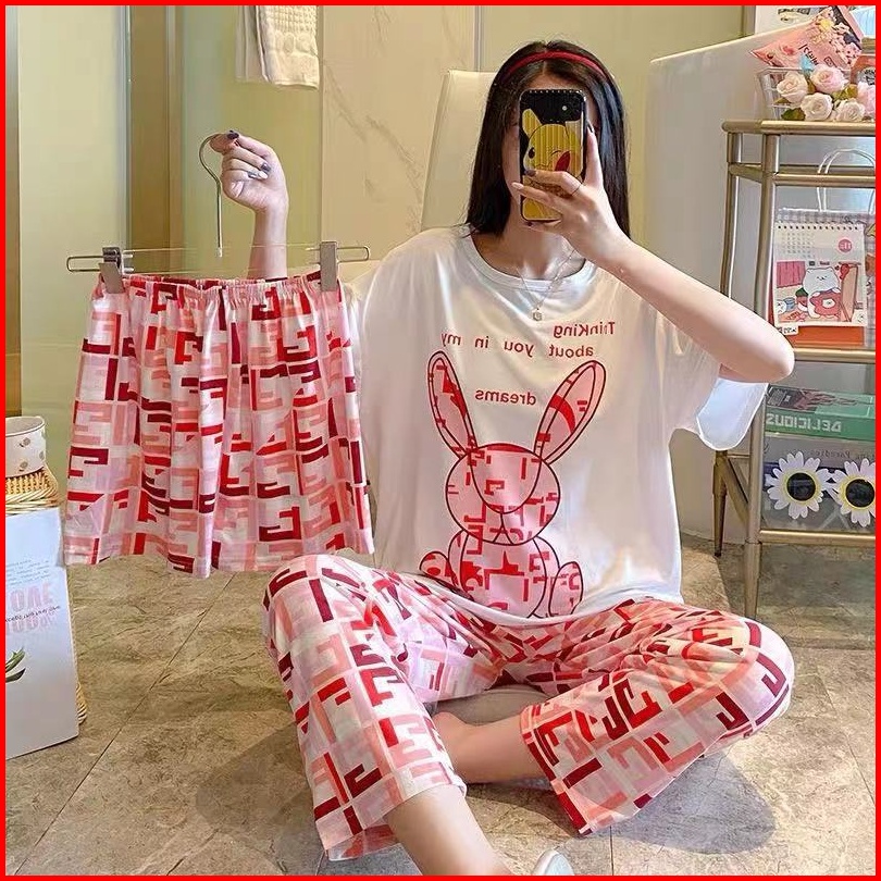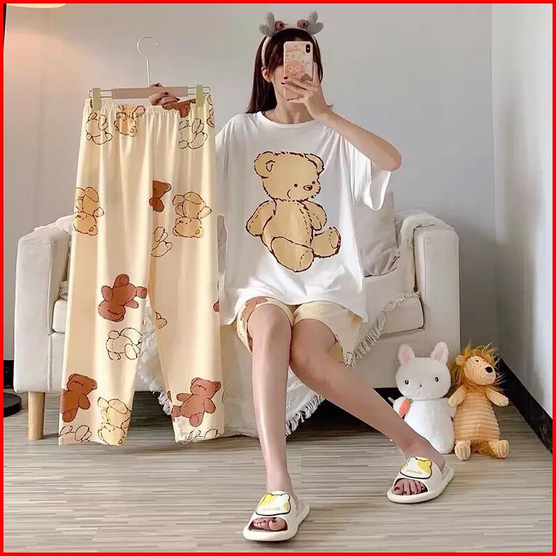Smile Piyama 3 In 1 Piyama Lengan Pendek Baju Tidur Impor Baju Tidur 3in1 4045