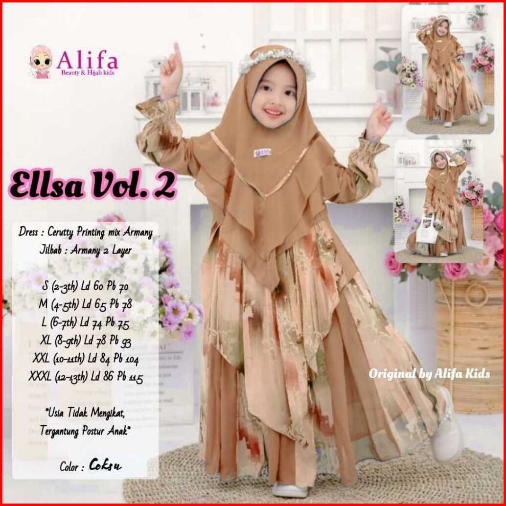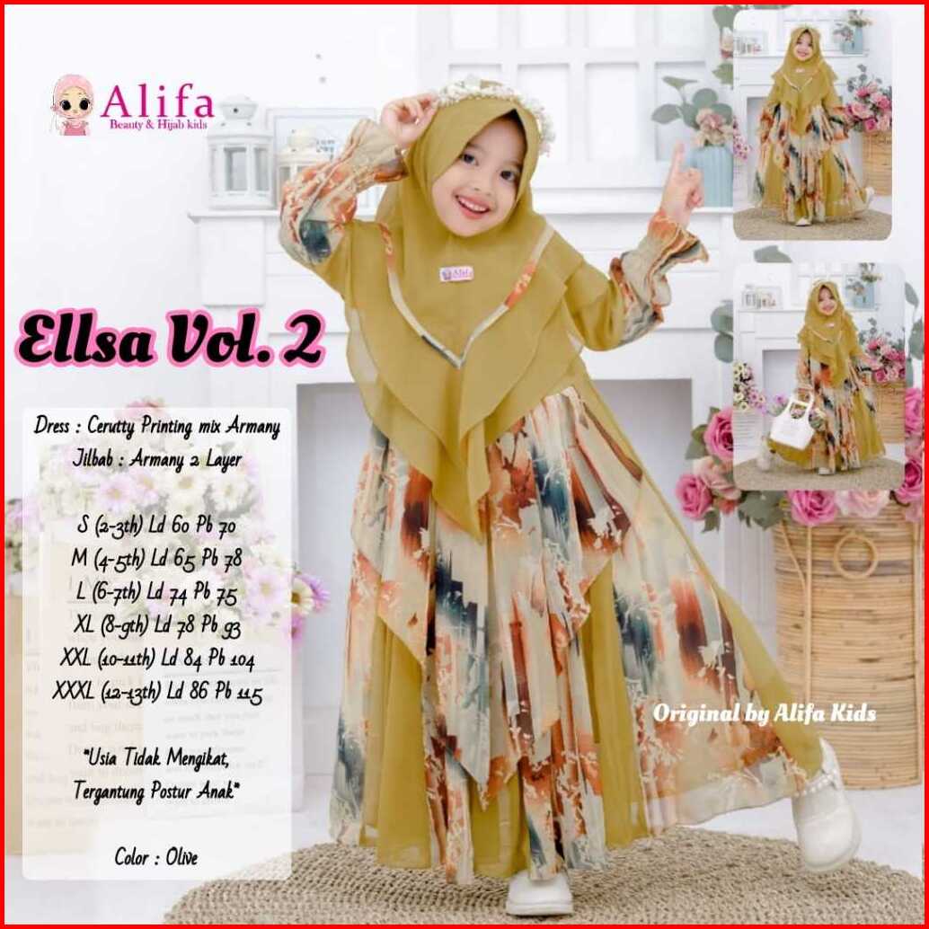 Shopakids Ellsa Vol.2 Dress Kids Gamis Anak Perempuan Ceruty Printing Mix Armani Usia 2 3 4 5 6 7 8 9 10 11 12 Tahun Fre