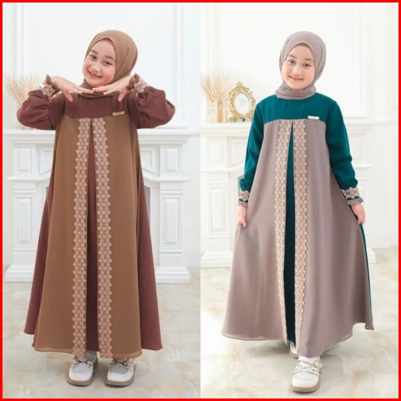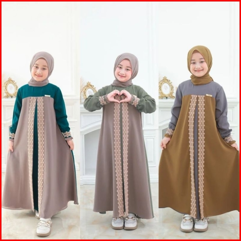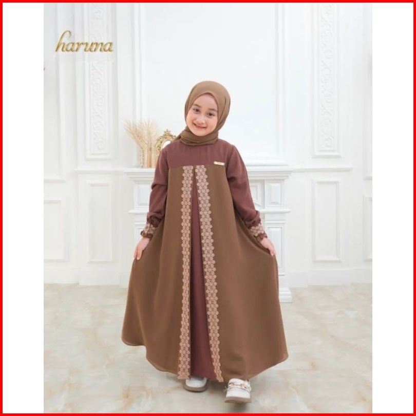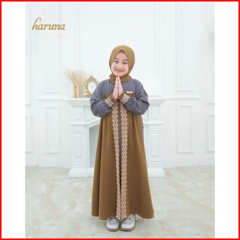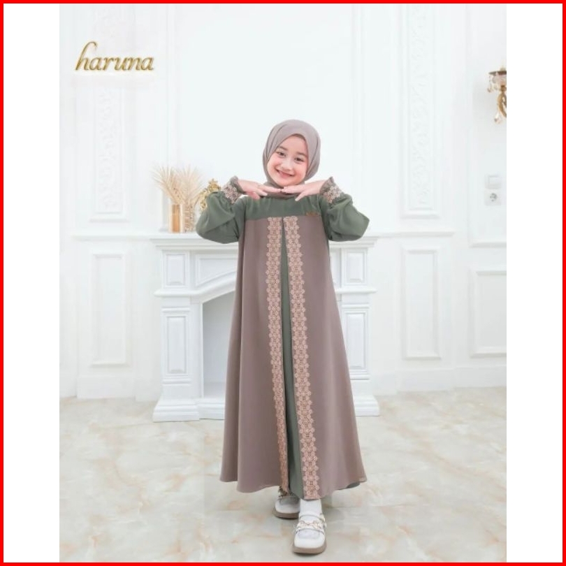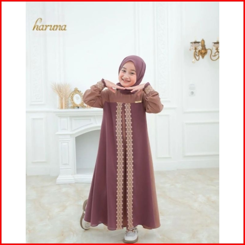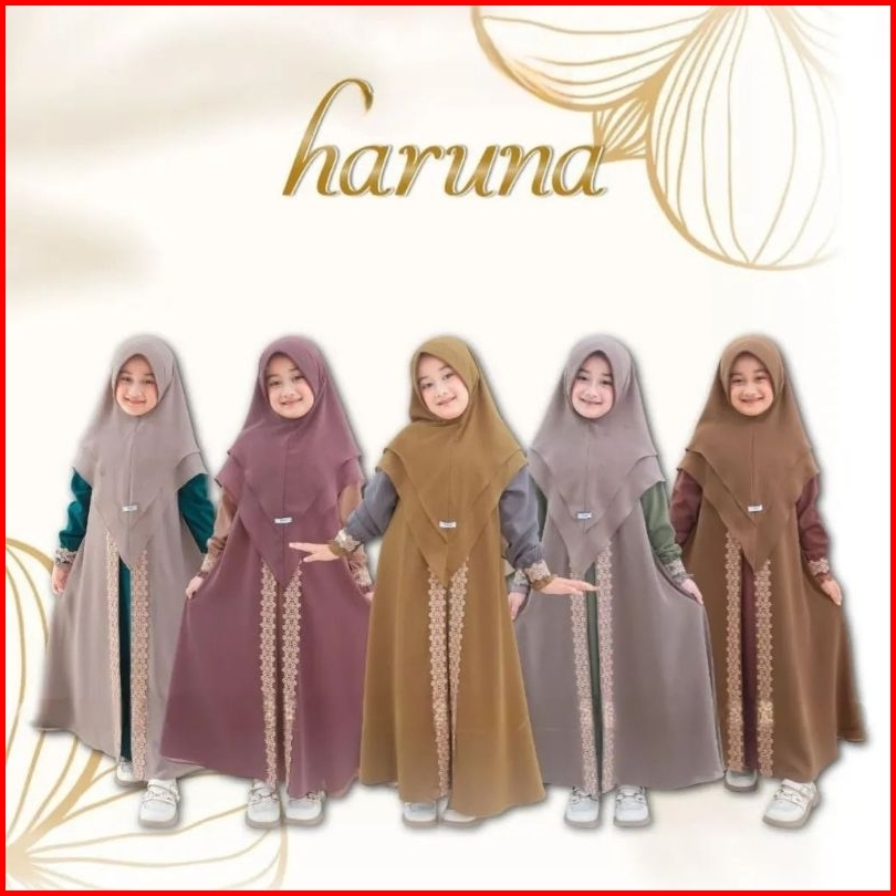 Haruna Syari Kids Set Khimar Free Pashmina Gamis Anak Terbaru Usia 4-14 Tahun S.m.l.xl Gamis Anak Ceruty Mix Renda Terba