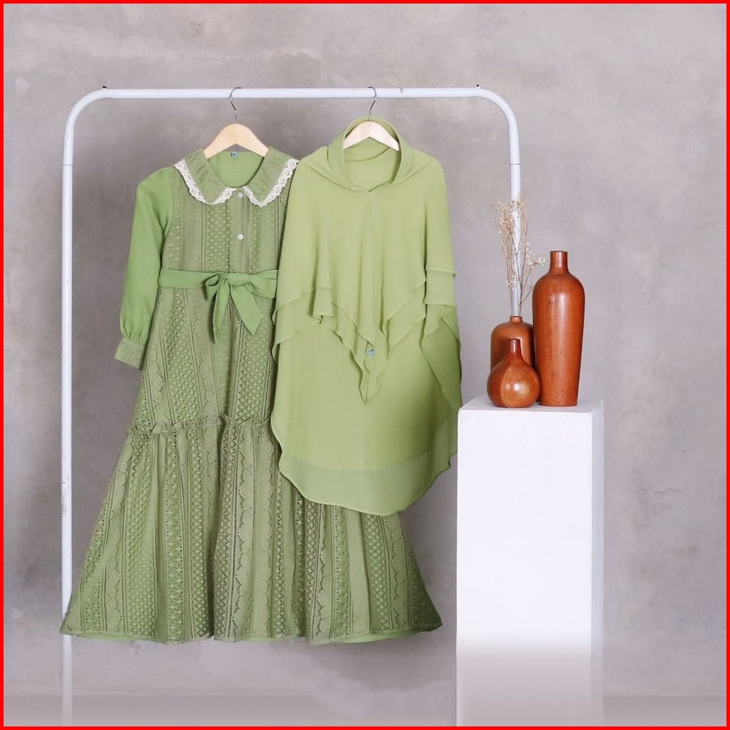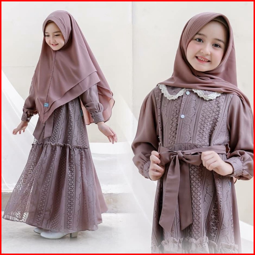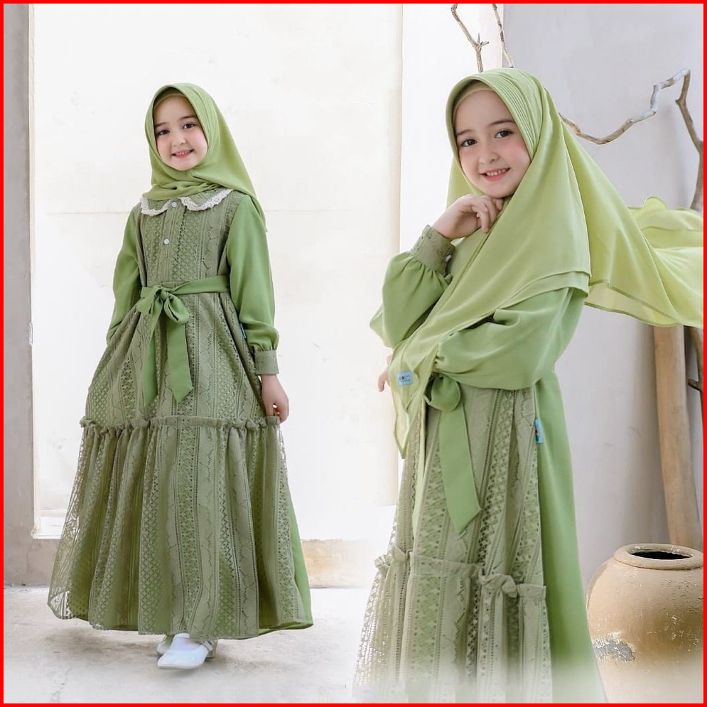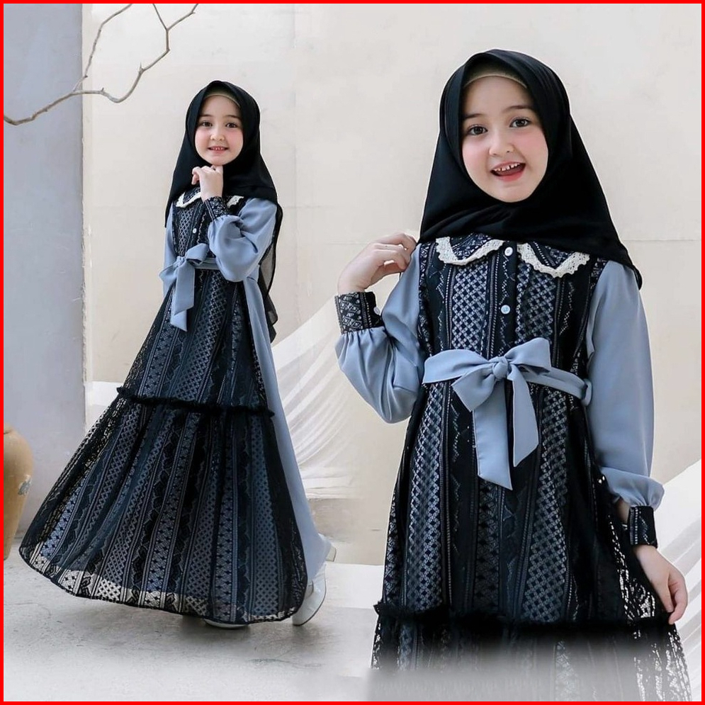 Vallina - Ghania Kids Gamis Syari Set Hijab Anak Perempuan Muslim Lebaran Terbaru 6 - 8 Tahun - Umama Kids Series