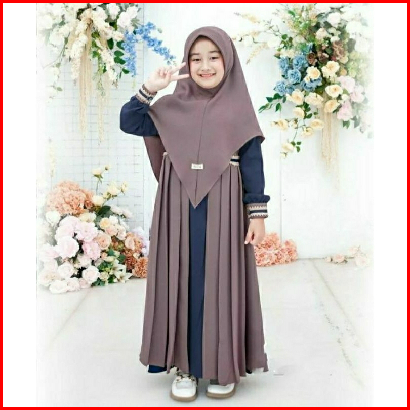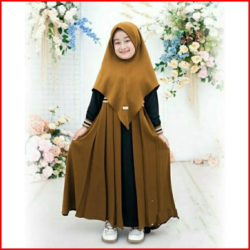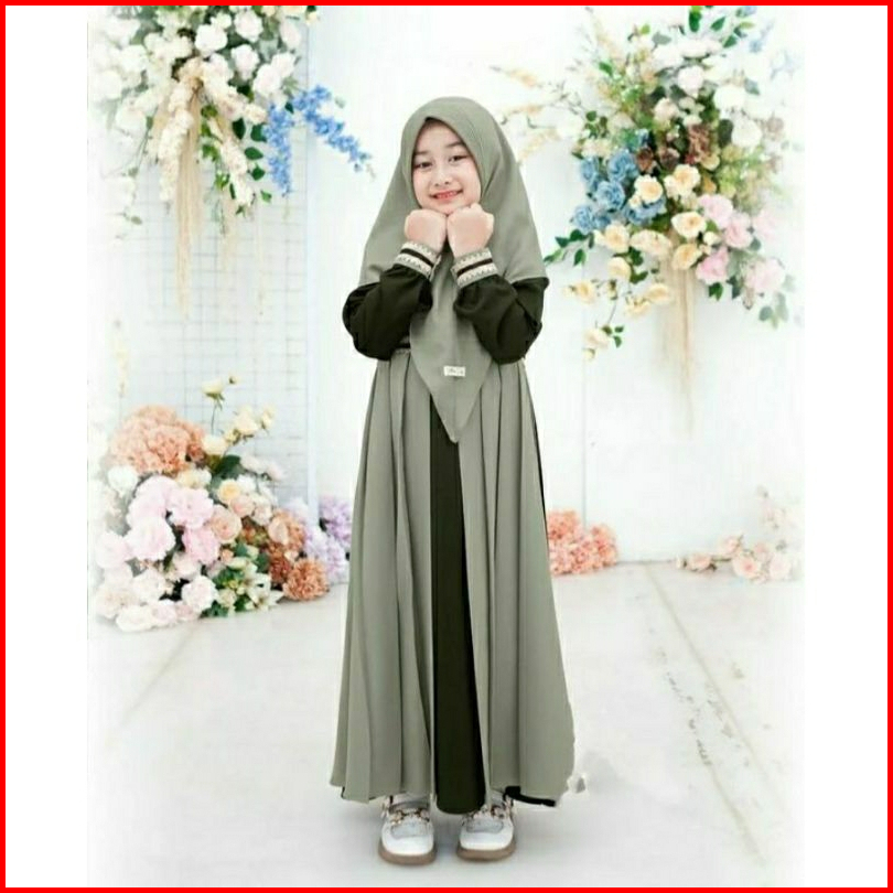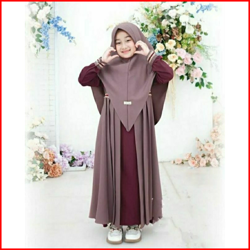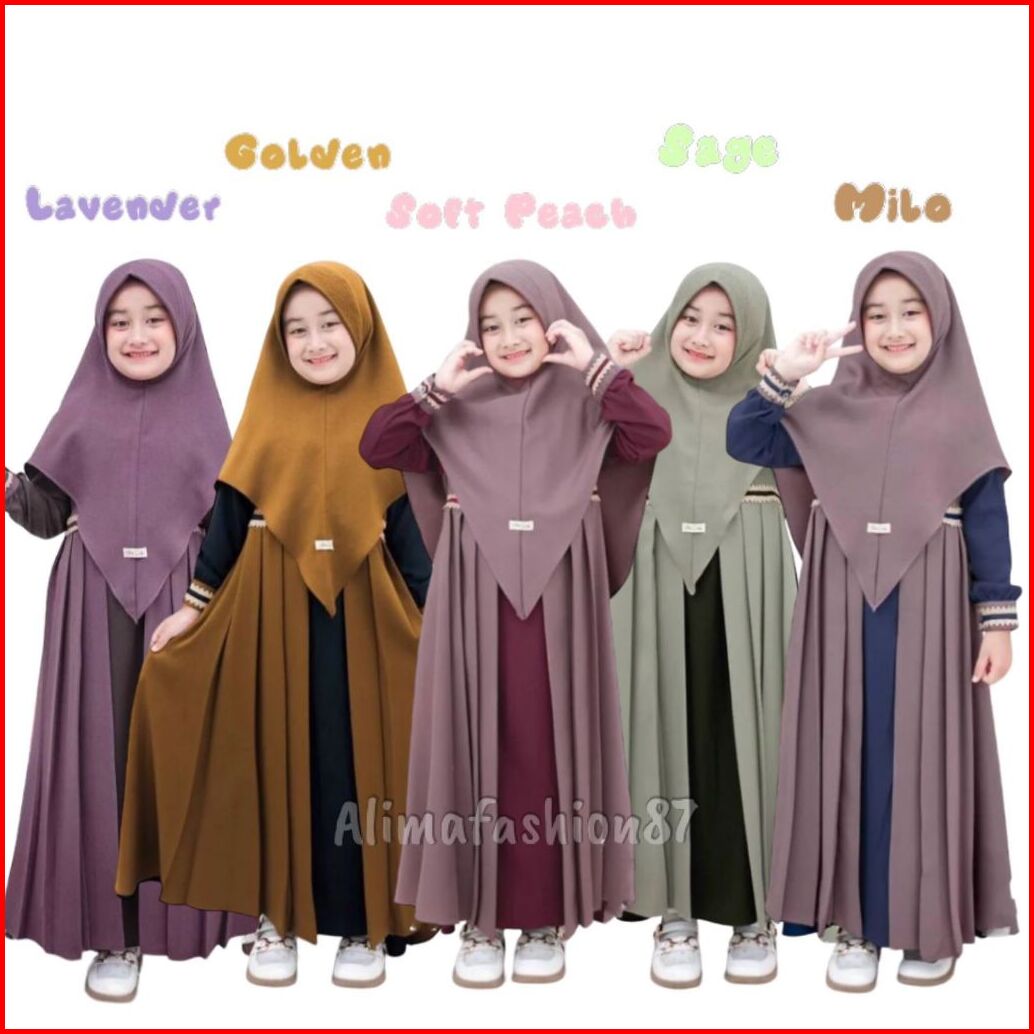 Ryanna Kids Gamis Anak Perempuan Syar I Set Khimar Dress Anak Usia 6-14 Tahun Ukuran M L Xl