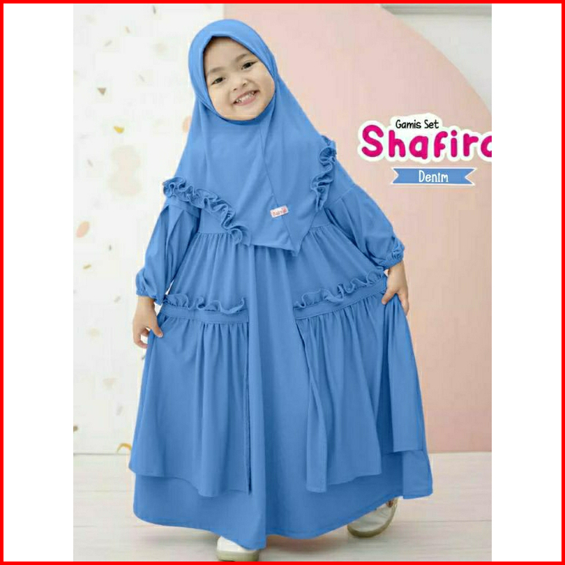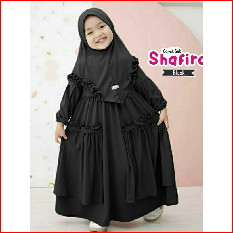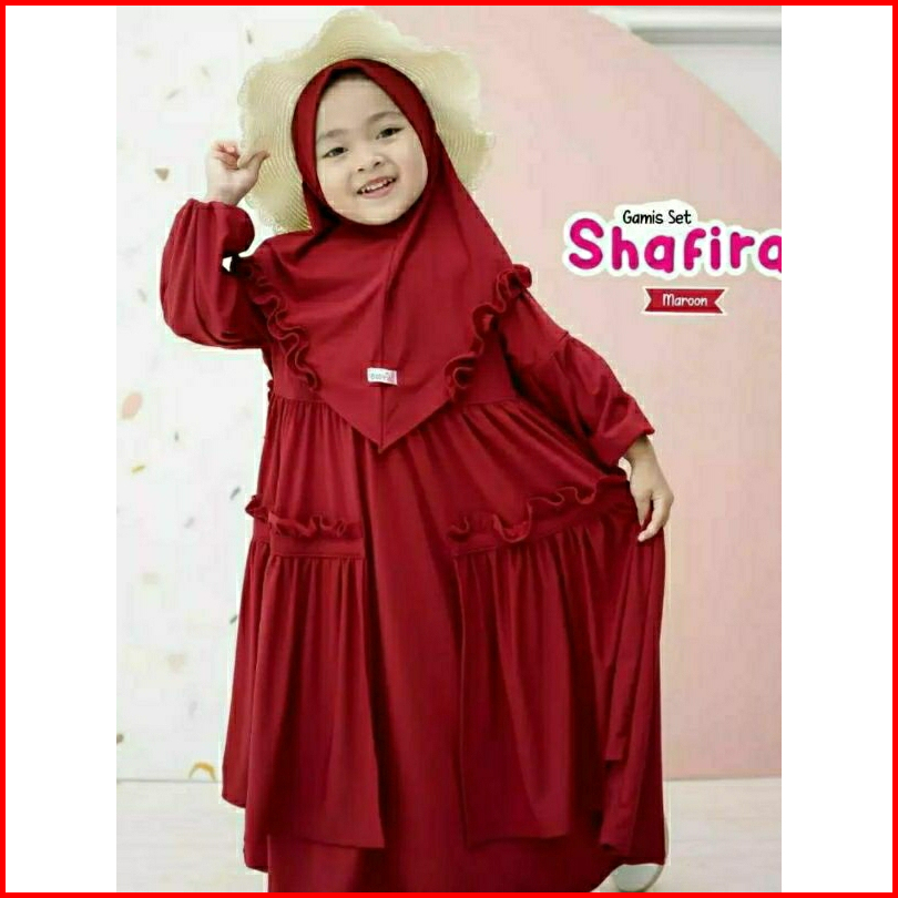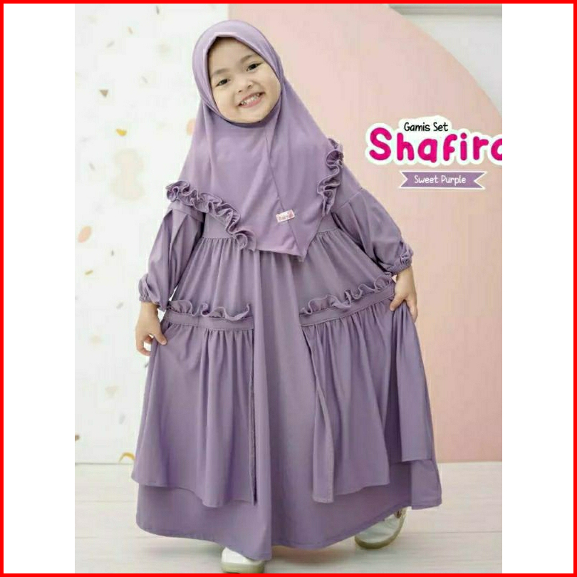 Gamis Anak Set Hijab Shafira Dress Gamis Syari Plus Hijab Size 1-12 Thn Model Terbaru