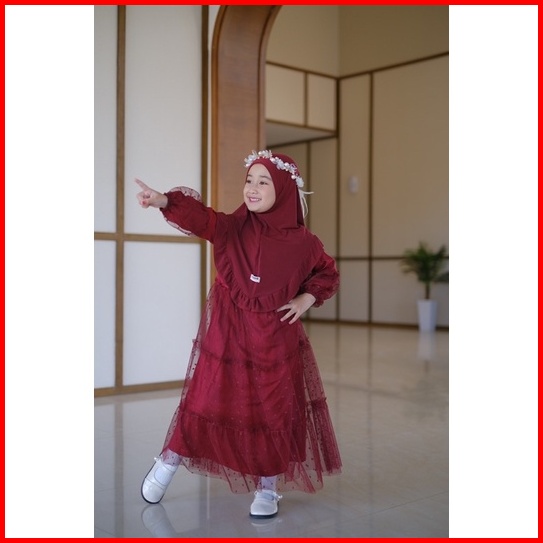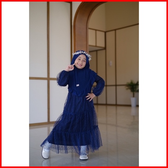 Gamis Elsa Plus Kerudung Gamis Anak Tile Dot Gamis Anak Tutu Gamis Anak Neeca Kiddos Size 2 4 6 8 10 Y