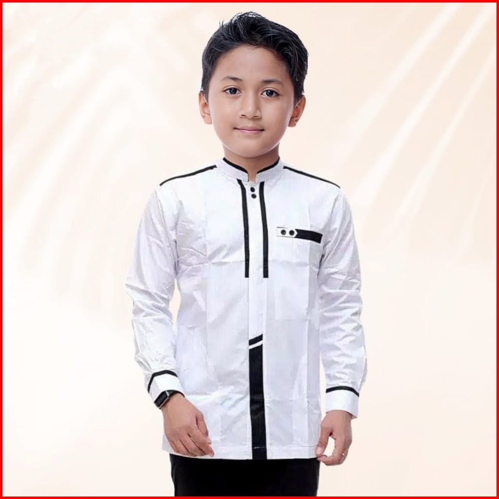 Yasmine Store - Baju Koko Anak Laki Laki Lengan Panjang Koko Khatulistiwa Usia 5-14tahun Koko Putih