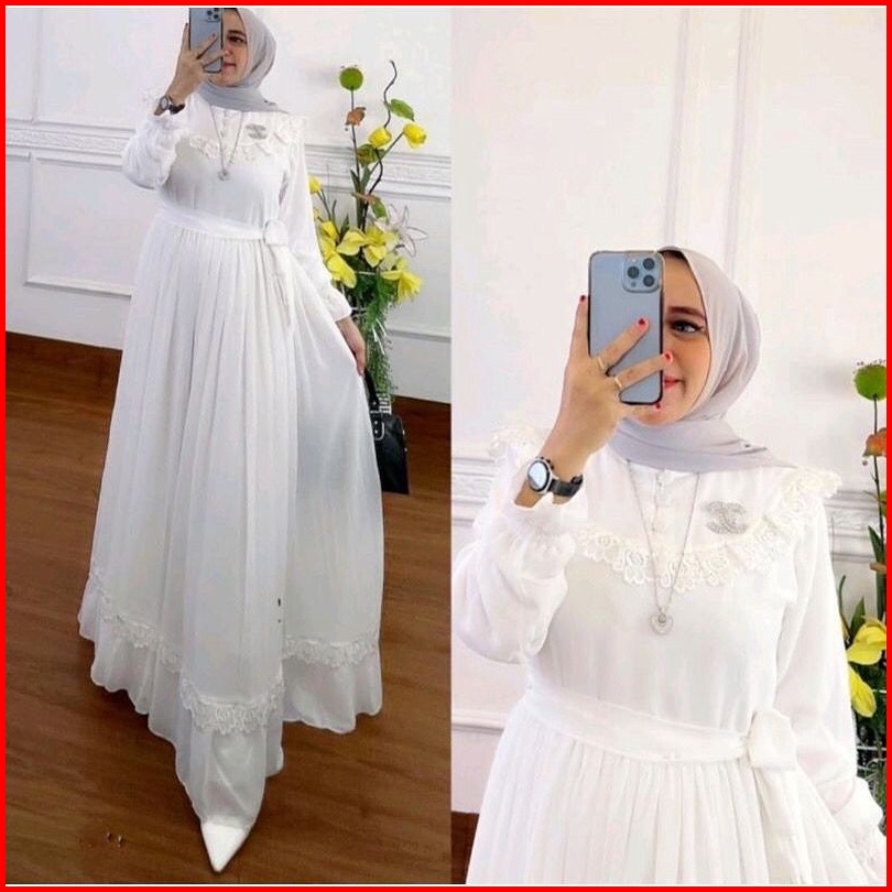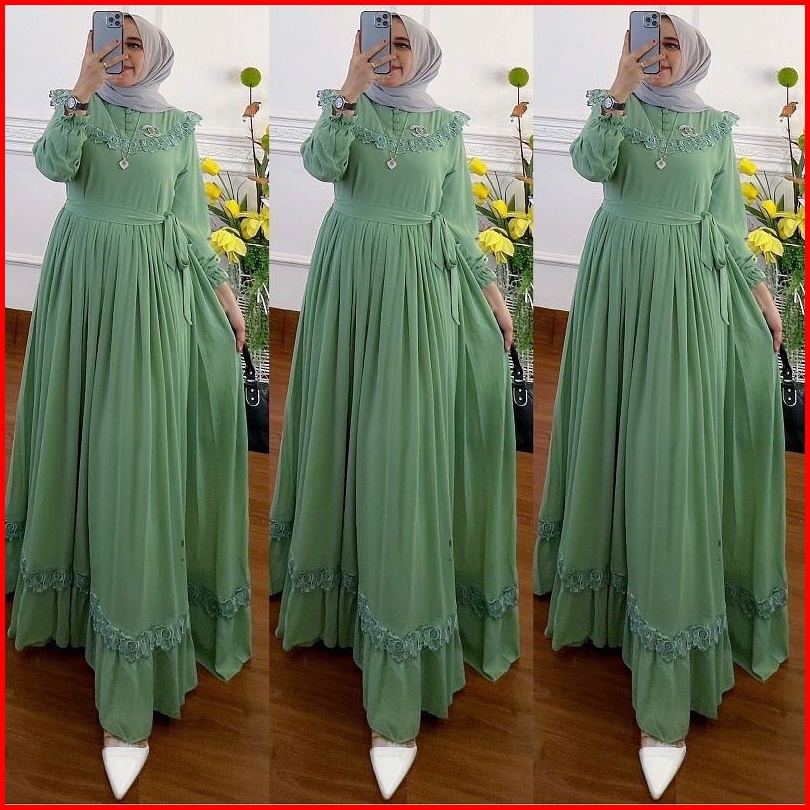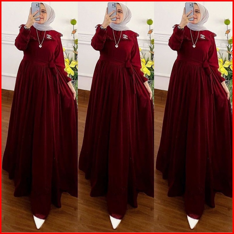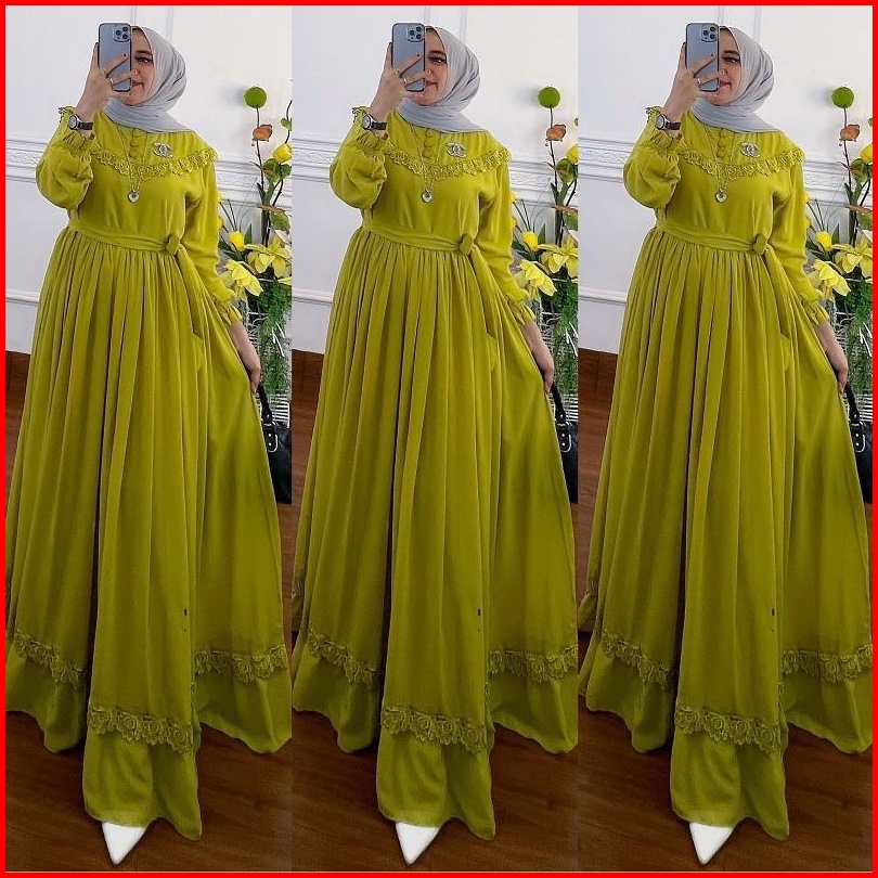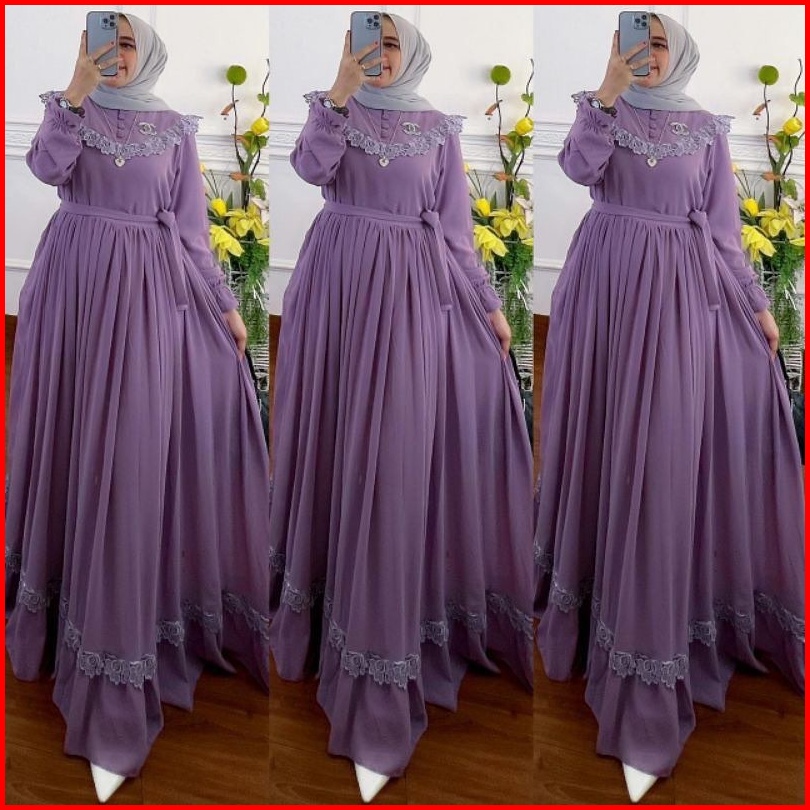Naraya Dress Rauna Dress Gamis Wanita Terbaru Matt Ceruty Mix Furing Aplikasi Renda Fashionable Kekinian Terlaris Kf