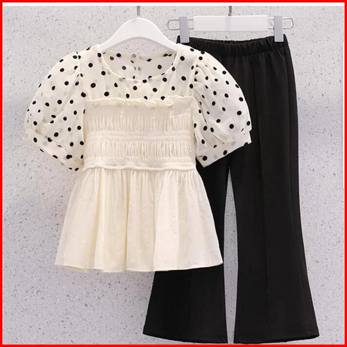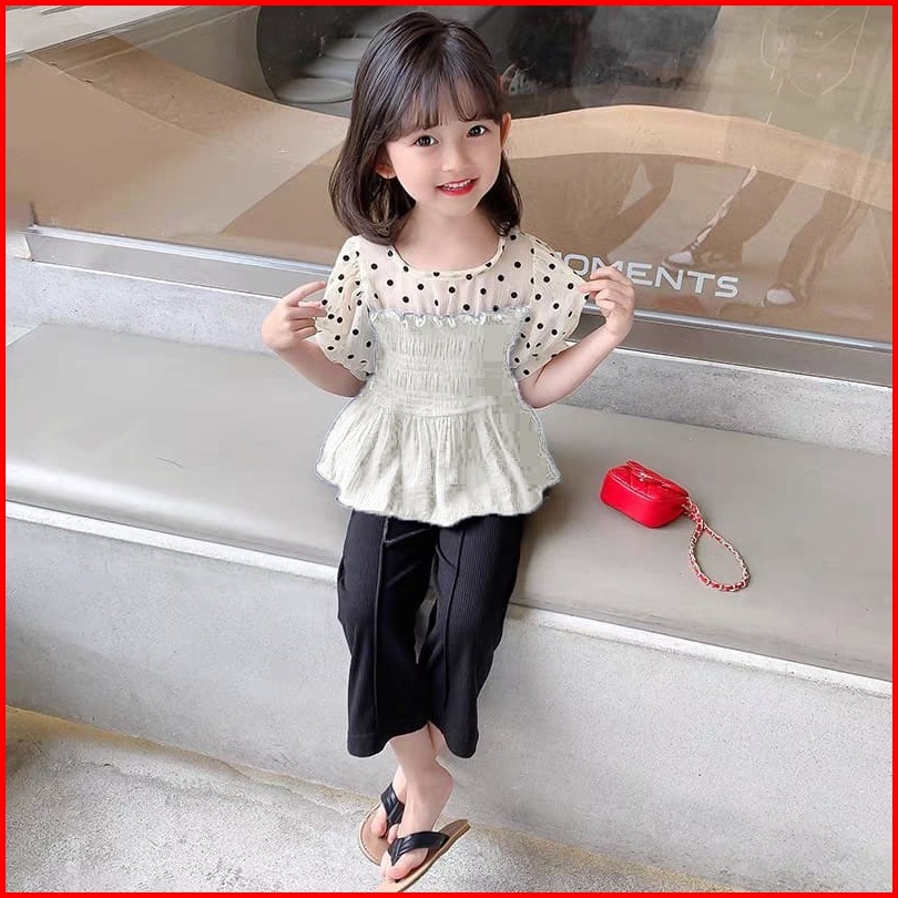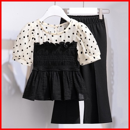 Meandboss Ssp59-setelan Set Anak Perempuan Polka Top Kulot Pants