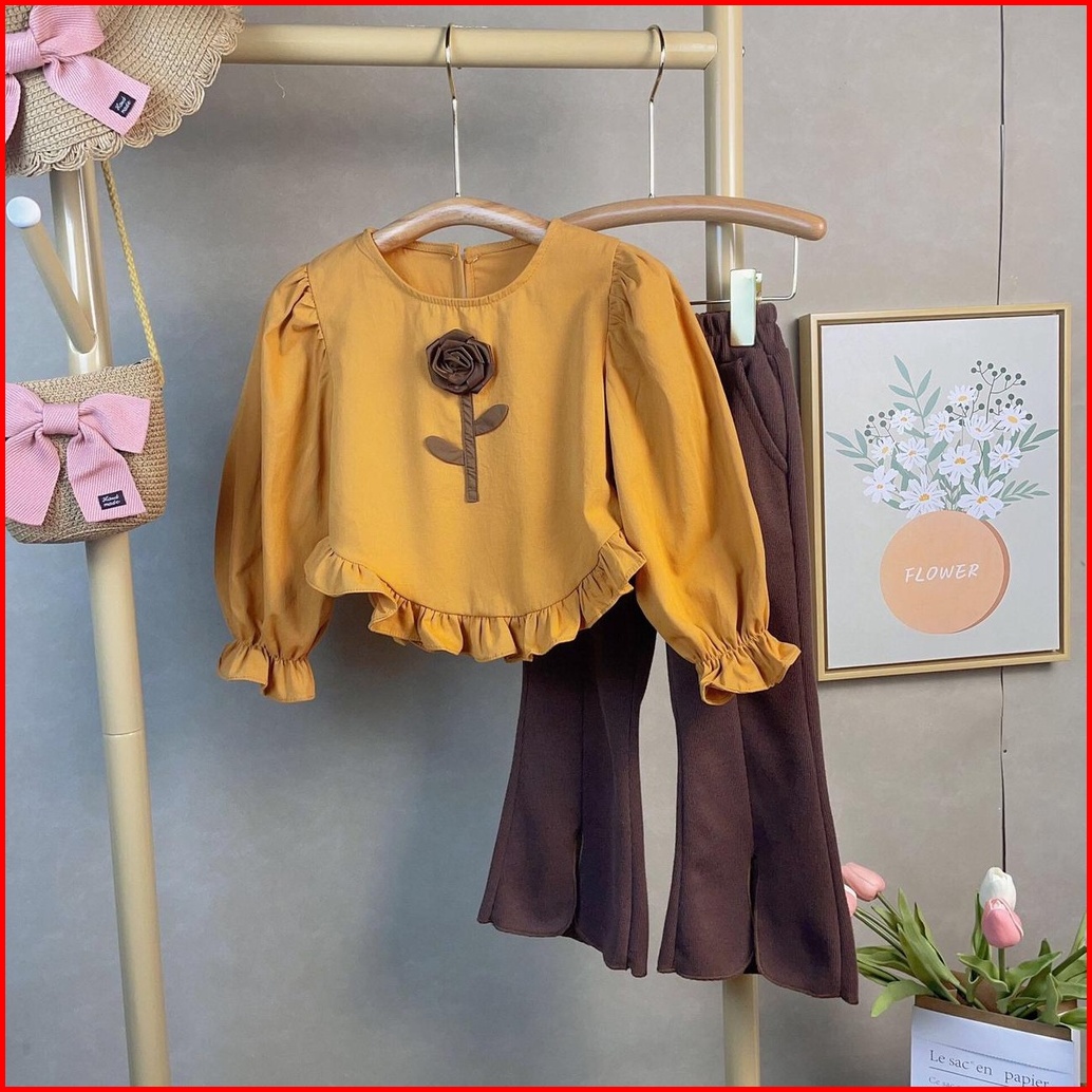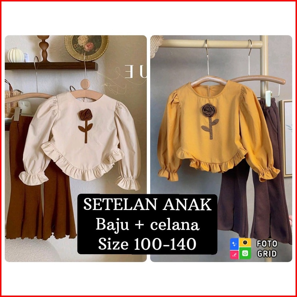 Loli-jkt Bs-346 Setelan Anak Cewek Bunga Timbul 2warna Size 100-140