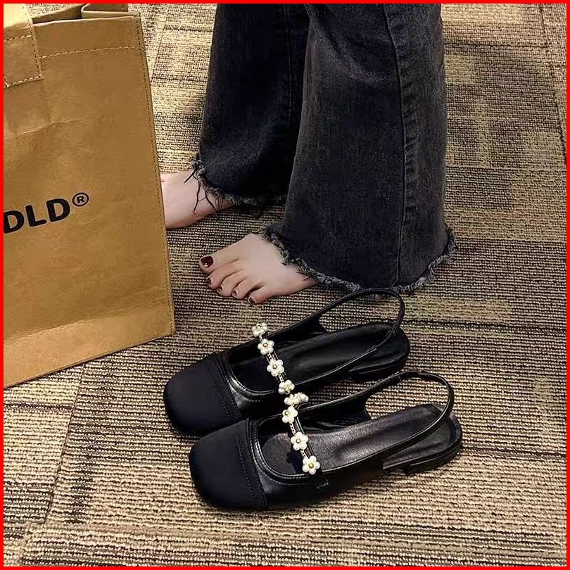 Nf2616 - Sandal Flat Shoes Motif Bunga Fashion Kekinian Sandal Flat Shoes Terbaru Sandal Terlaris
