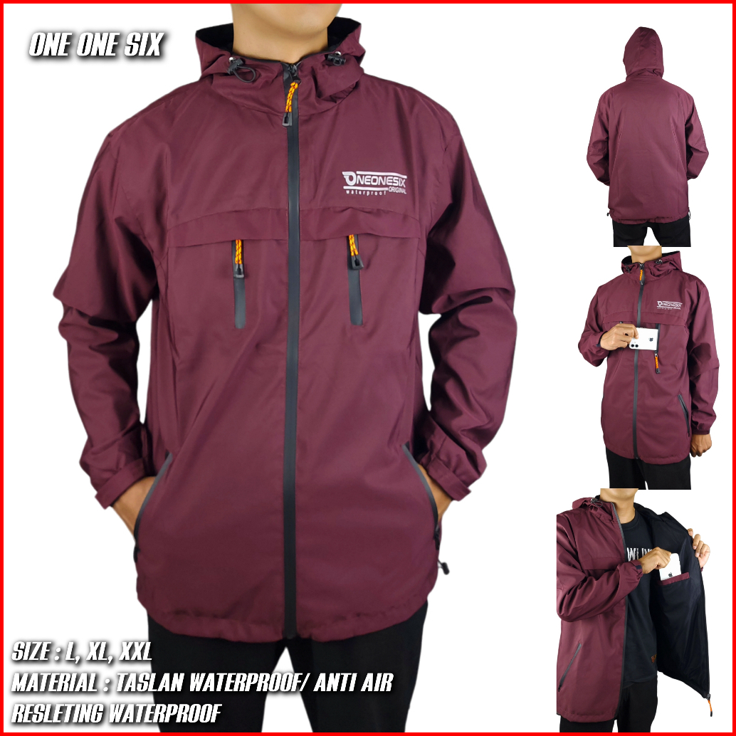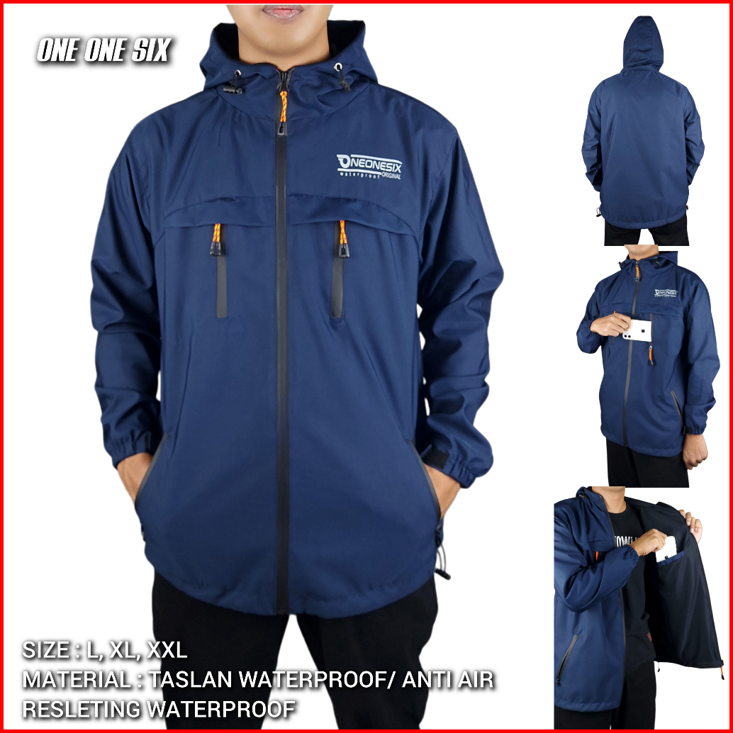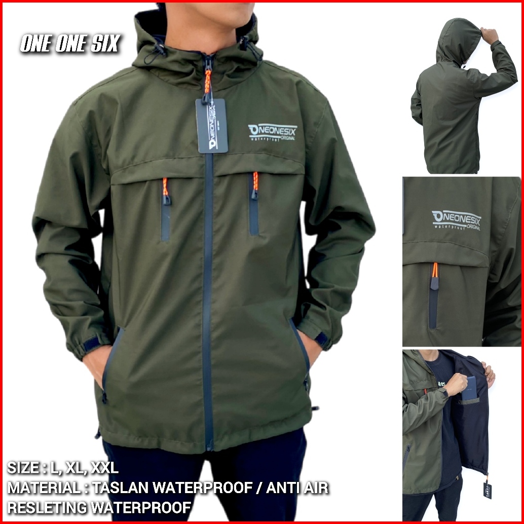 Jaket Outdoor Waterproof Pria Taslan Jn Premium Jacket Hoodie Gunung Parasut Anti Air Traveling Hiking Dewasa
