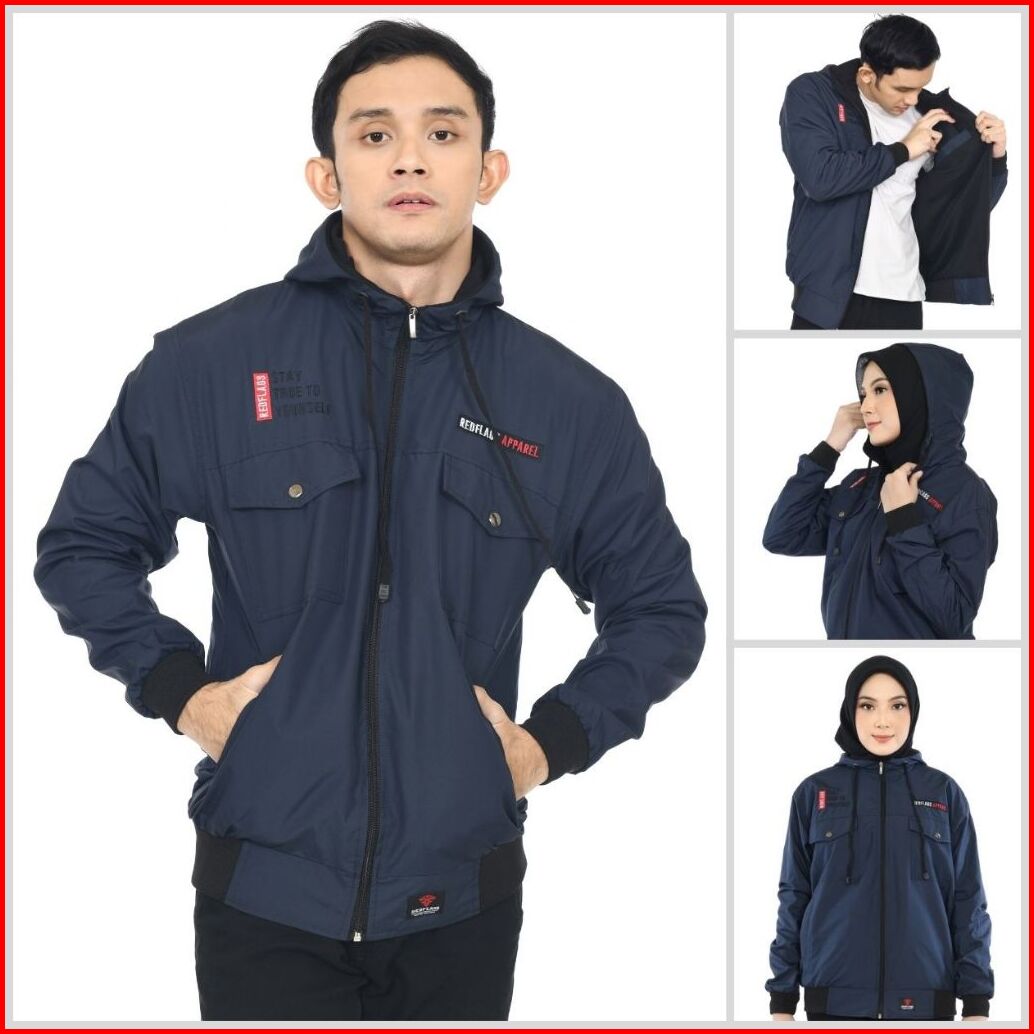Jaket Bolak Balik Pria Casual Redflags 2in1 Parasut Anti Air Fleece Size M L Xl Xxl
