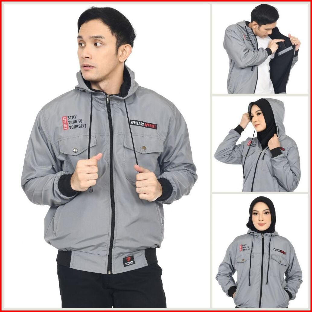 Jaket Parasit Pria Distro Waterproof Outerwear Bolak Balik Outdoor Anti Air Original Redflags