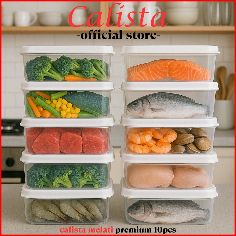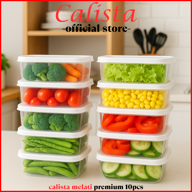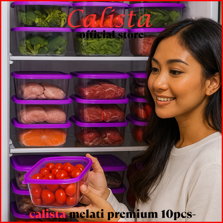 Calista Toples Plastik Food Container Calista Melati 10pcs Tempat Penyimpanan Makanan Dikulkas Set
