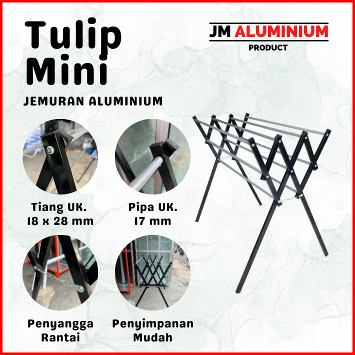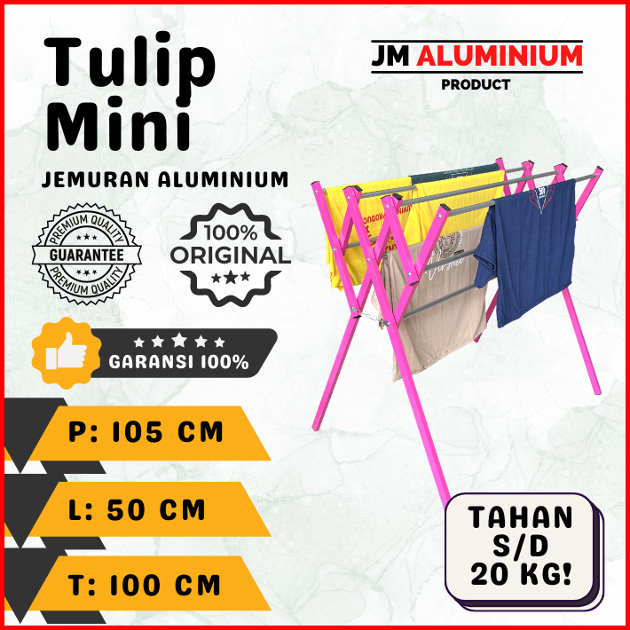 Jemuran Baju Aluminium Tulip Mini Warna - 1 M 105 Cm