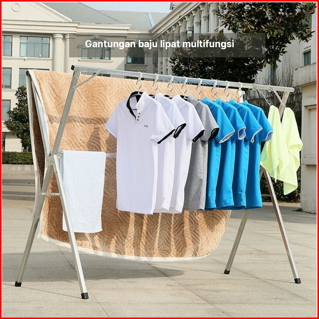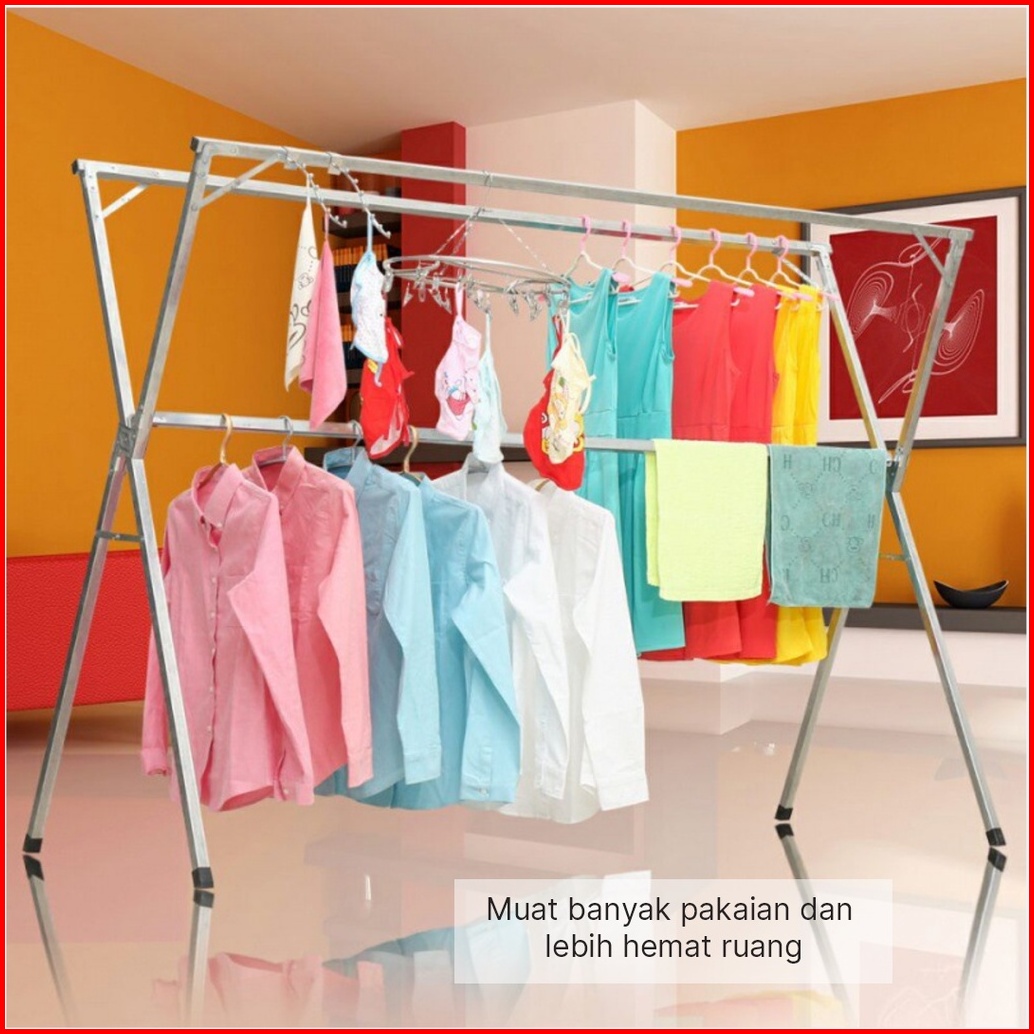 Lipat Jemuran Baju Stainless Gantungan Baju Berdiri Rak Jemuran Pakaian