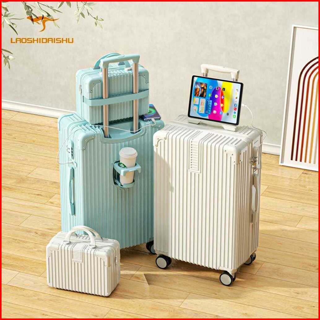Laoshidaishu Koper Mini Wanita 18 Inch Koper Kabin Usb Charger 20 Inch Kapasitas Besar 24 Inch Koper Cup Holder