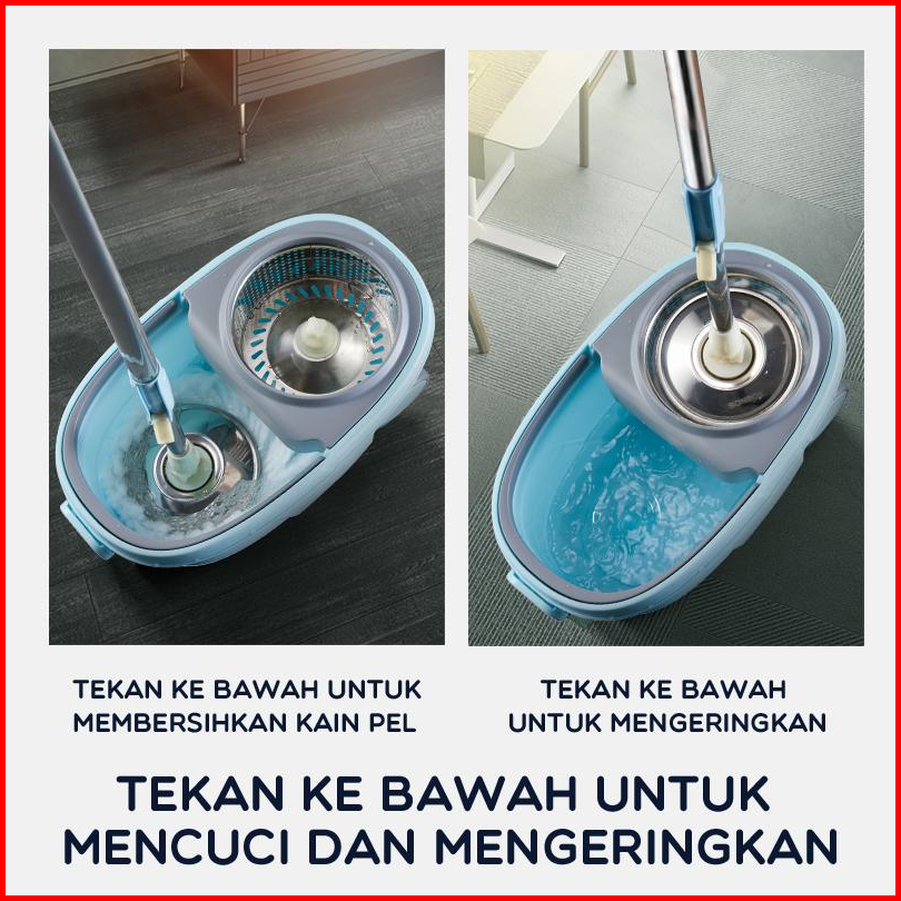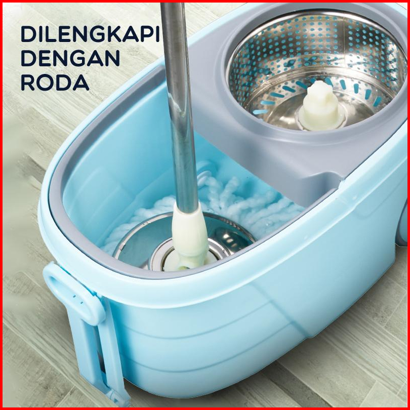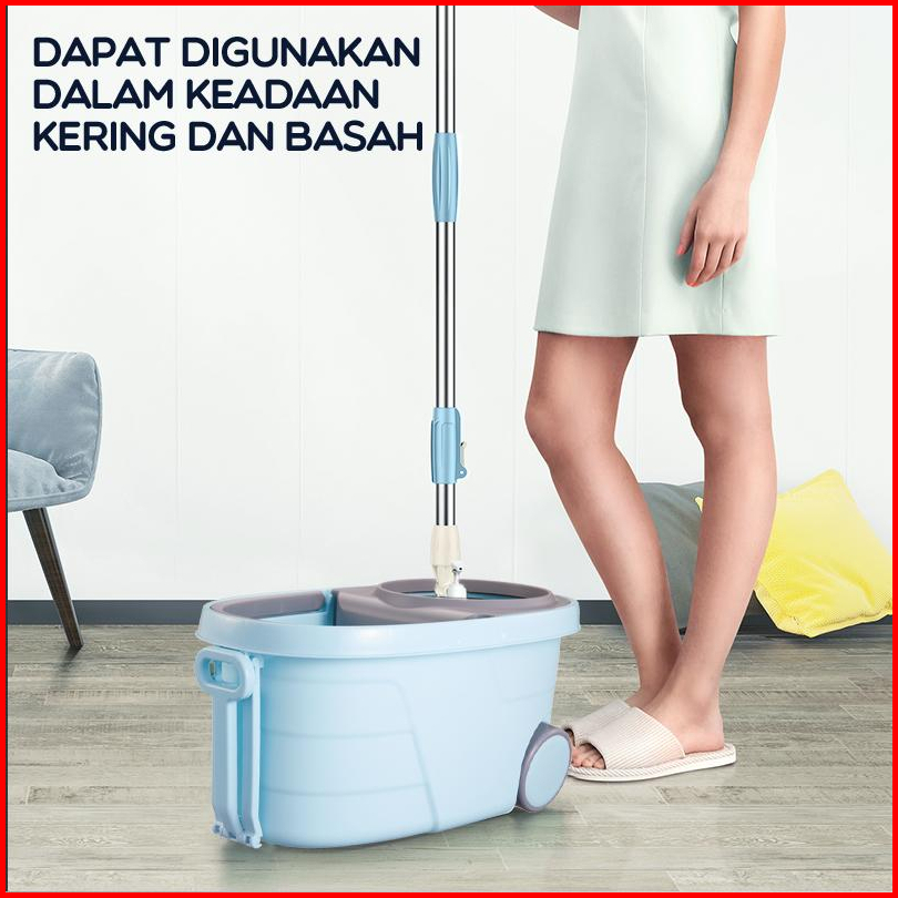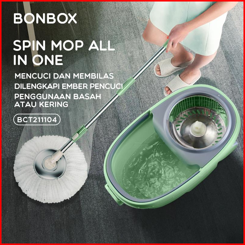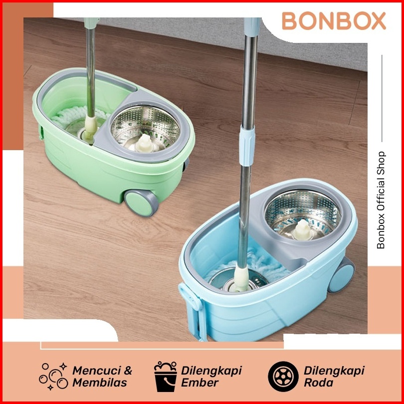 Bonbox Alat Pel Lantai 2 In 1 Free 2 Kain Fiber Dengan Ember Spin Mop Mencuci Dan Membilas Alat Pembersih Lantai Dengan