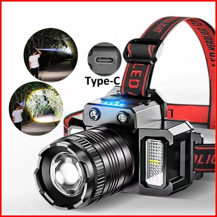 Senter Kepala Led Cob 55w 18w Side Light Headlamp Powerbank Senter Cas