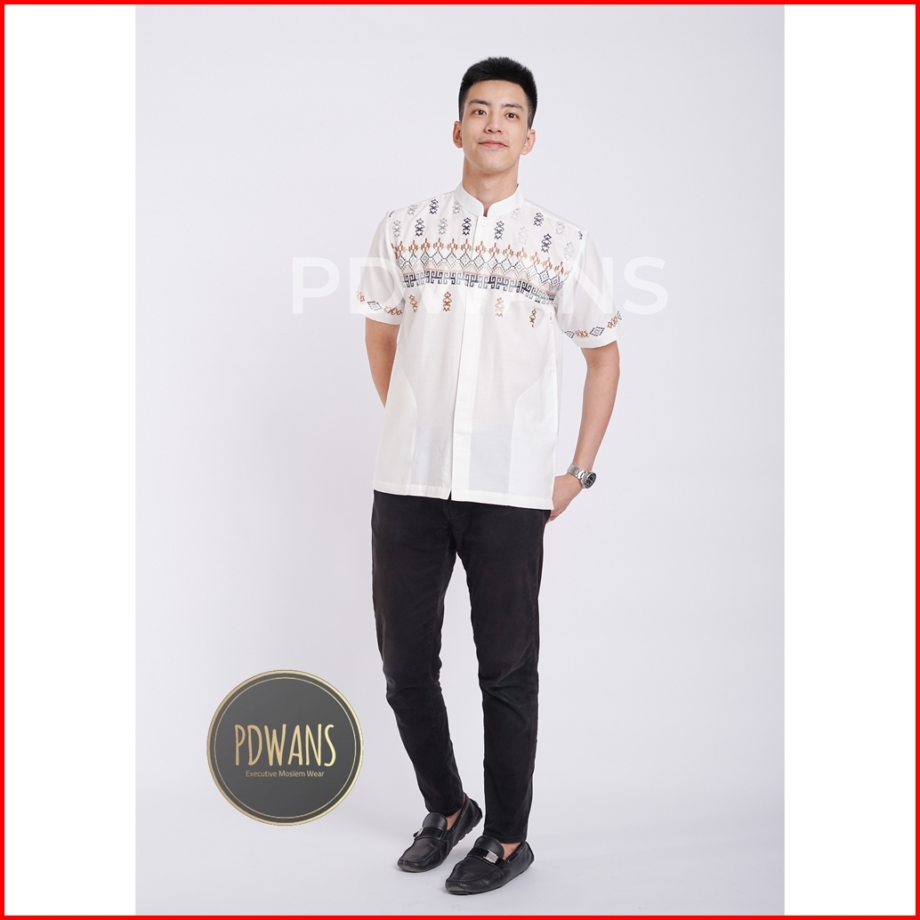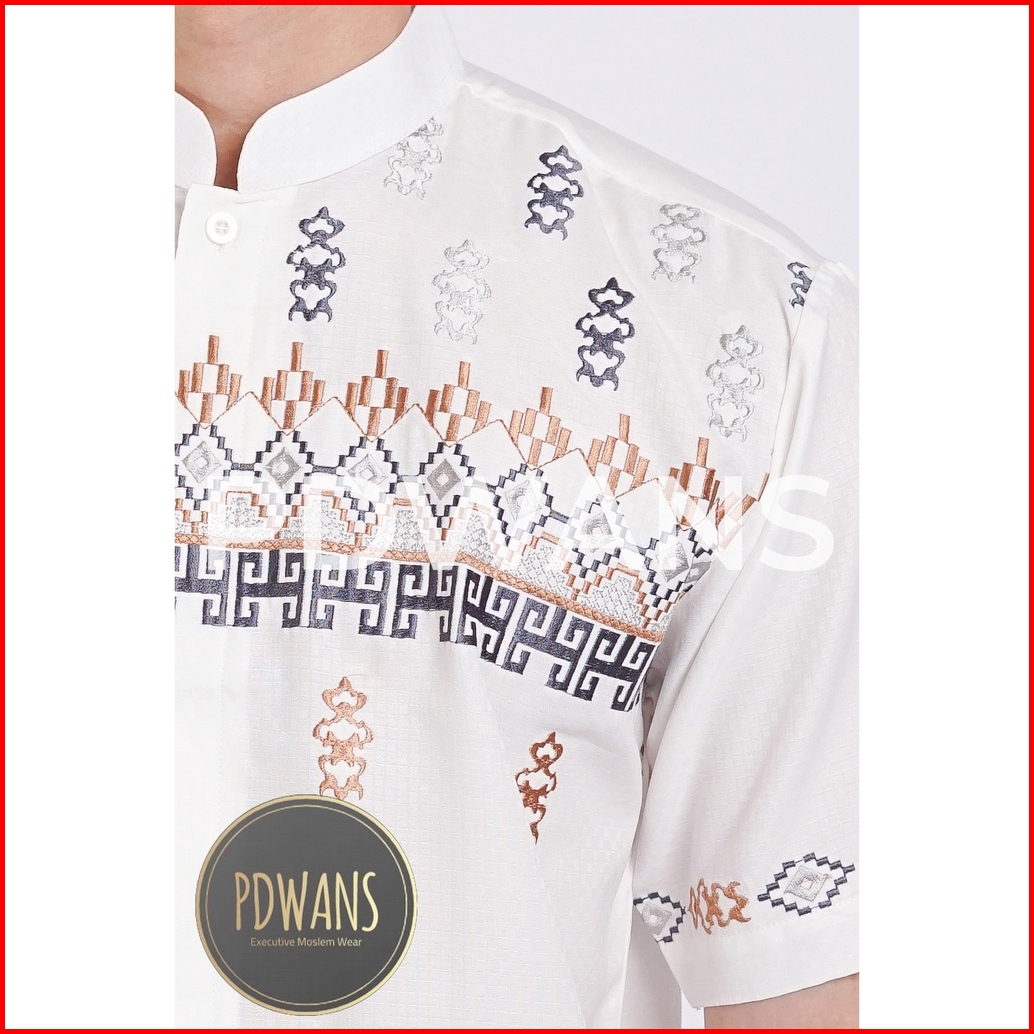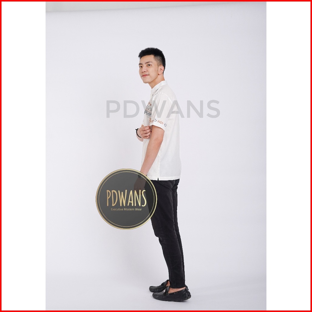 Baju Koko Muslim Lengan Pendek Putih Bordir Pdwans - Bmt24