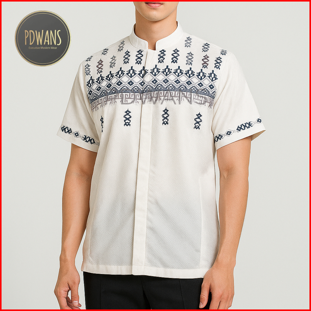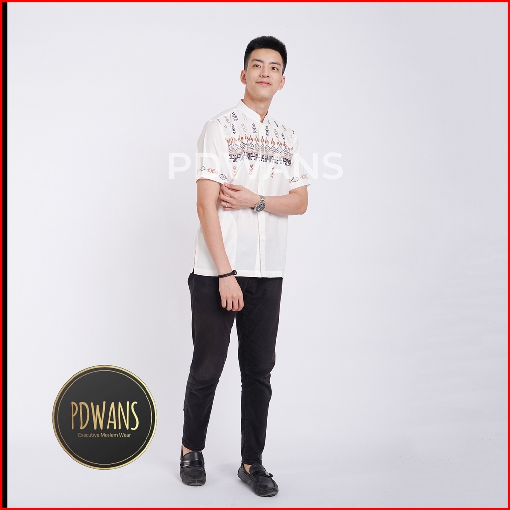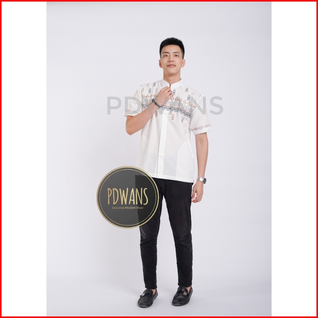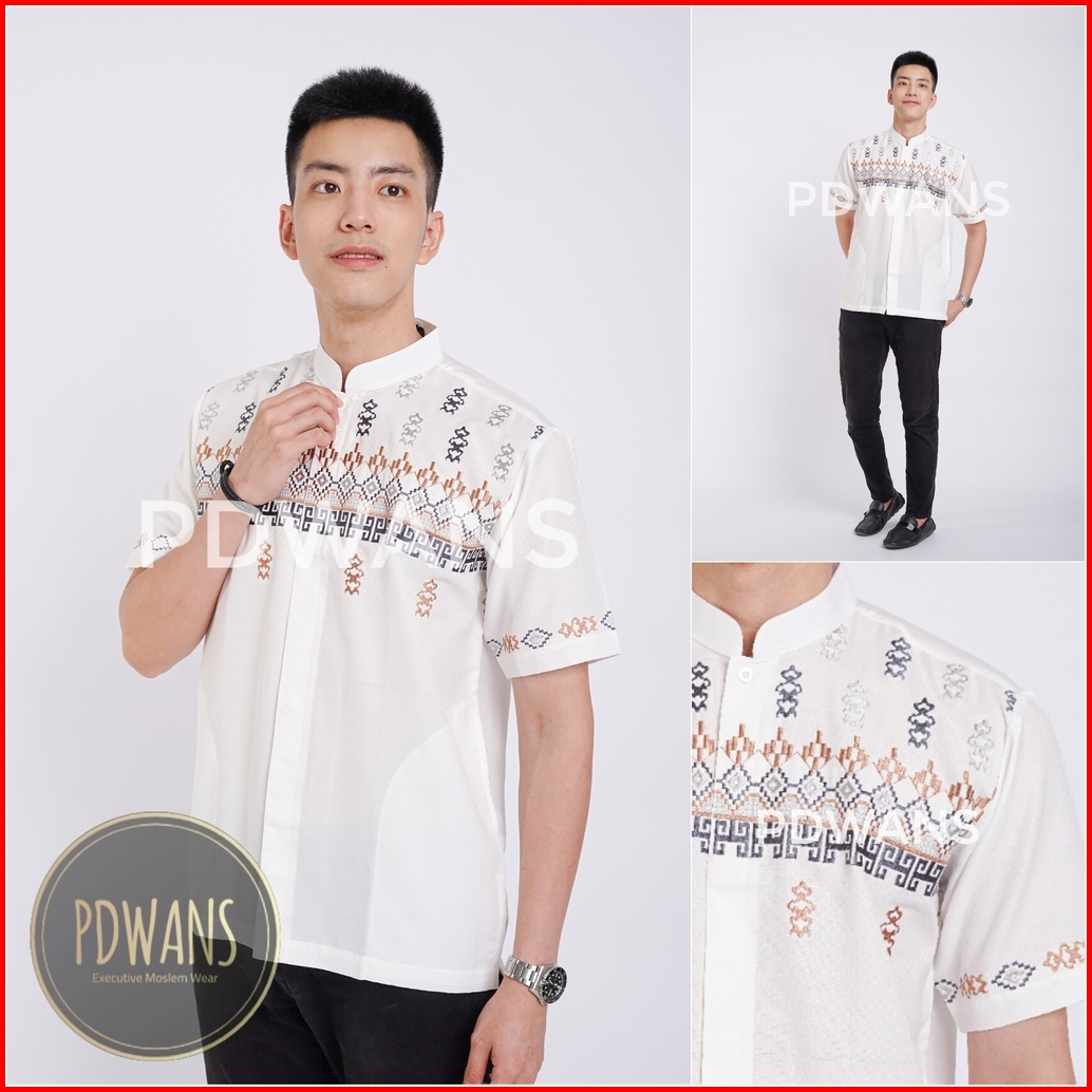 Baju Koko Muslim Lengan Pendek Putih Bordir Pdwans - Bmt24