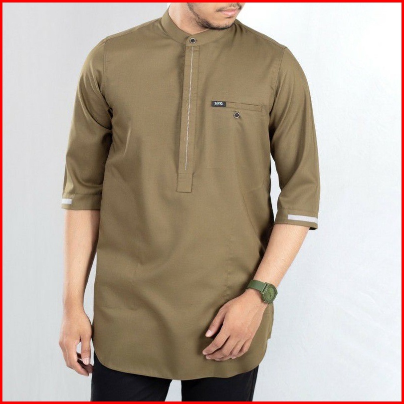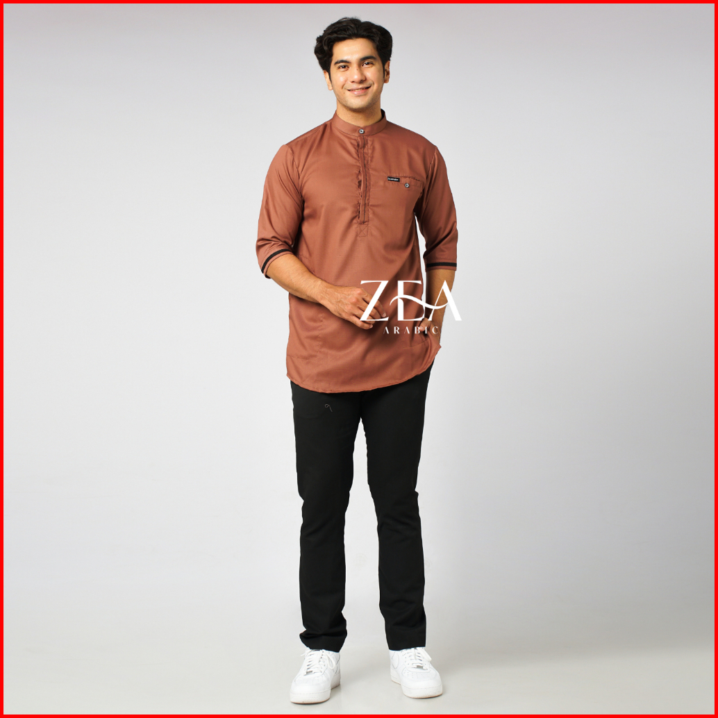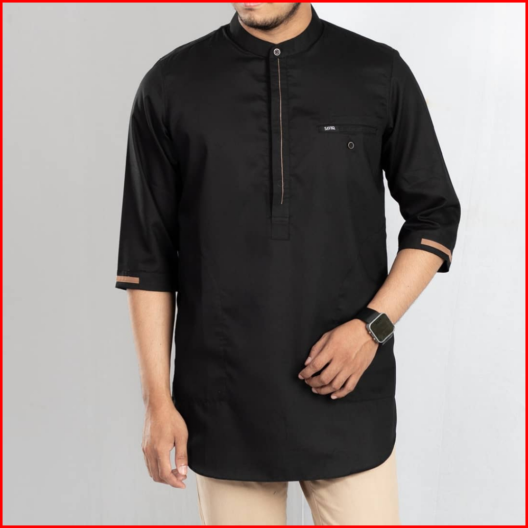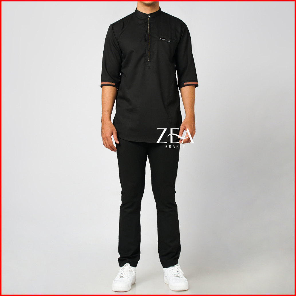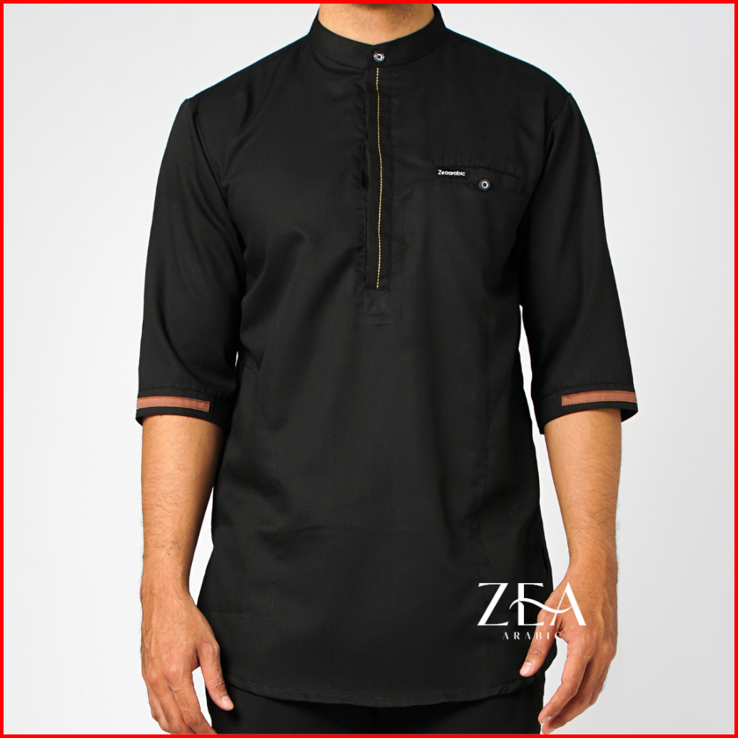 Zeaarabic Kemeja Koko Pria Basic Polos Hitam 3 4