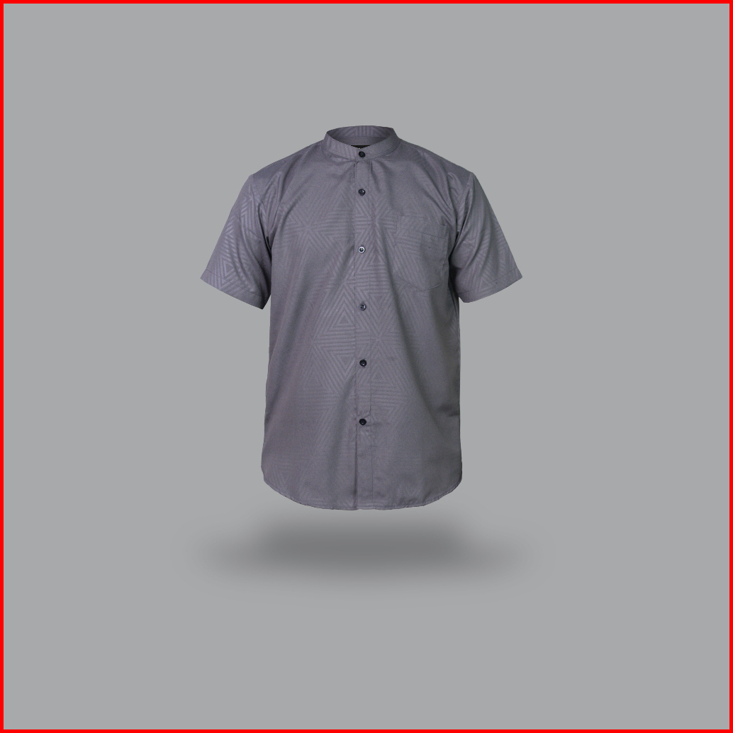 Khaf97 Koko Pria Lengan Pendek Kemko Polos Faizan Motif Embos Abu - Abu