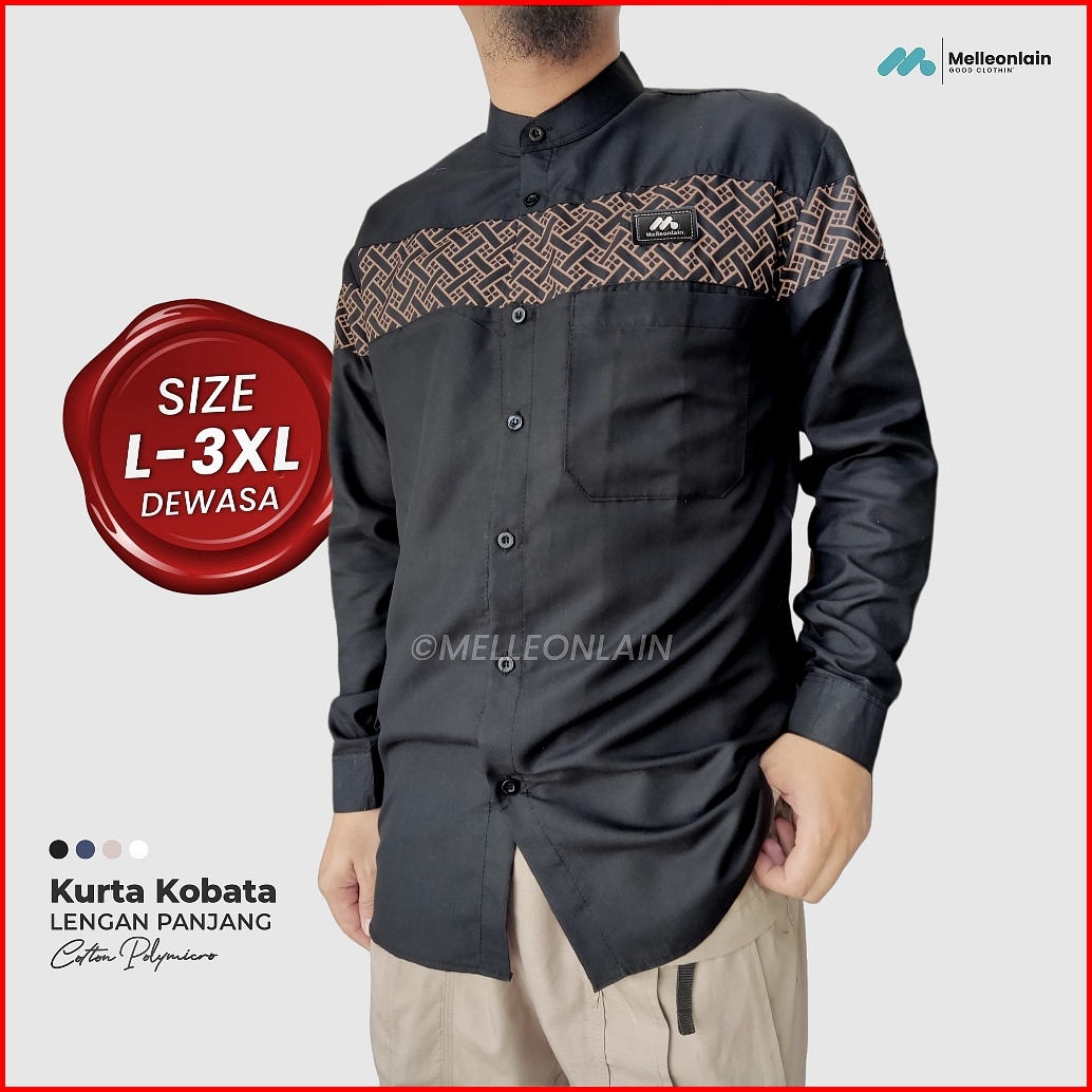 Baju Koko Kobata Kemko Kemeja Kurta Lengan Panjang Manset Takwa Muslim Pria Katun