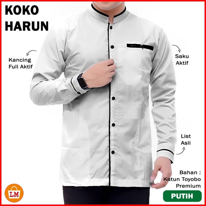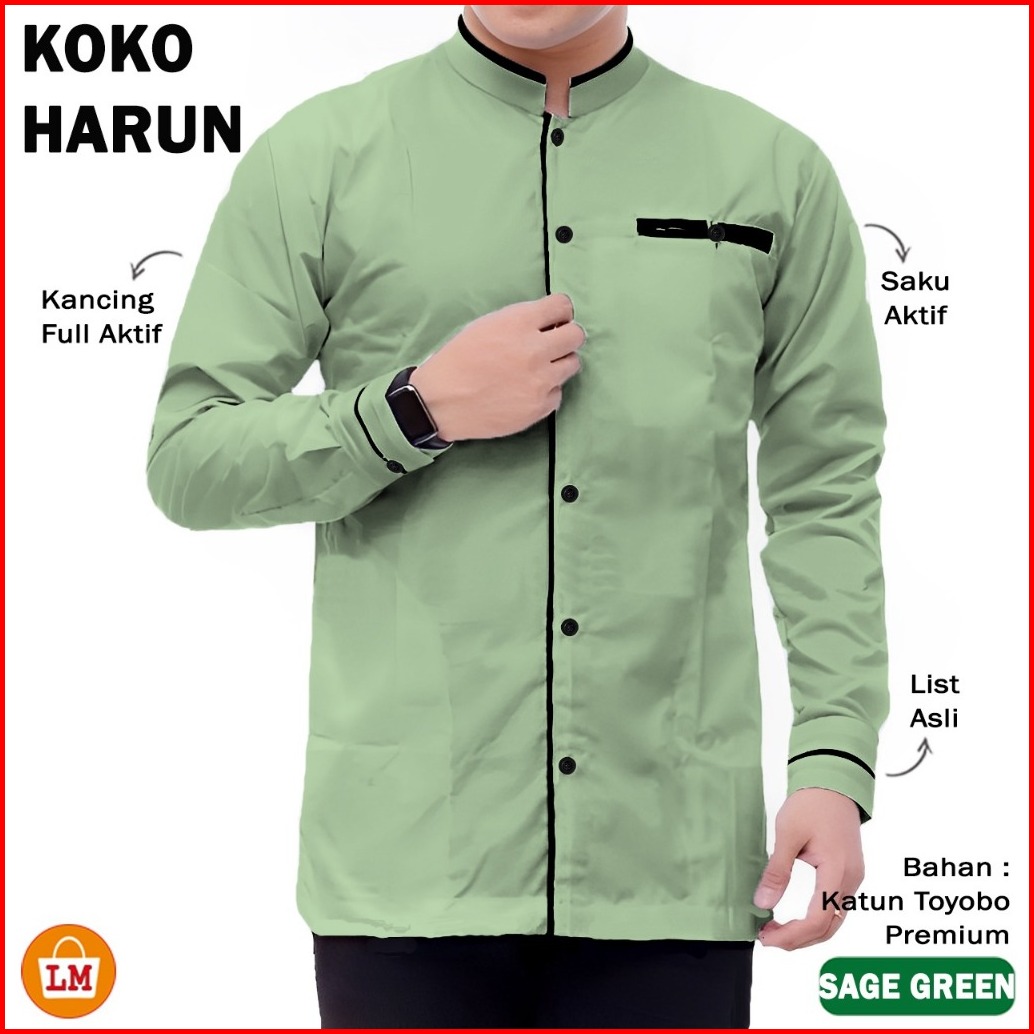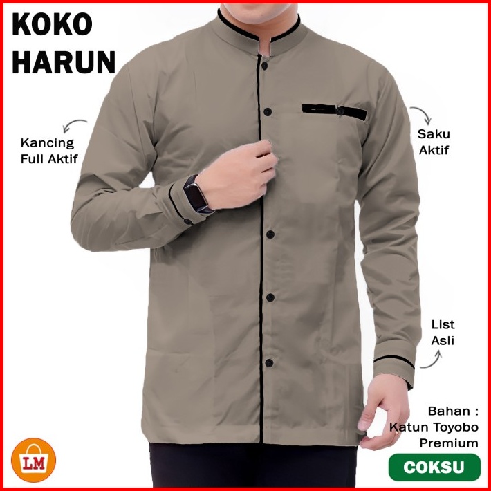 Lpm 33158 Baju Koko Pria Muslim Koko Harun Katun Toyobo Lengan Panjang Terkini M-xxxl
