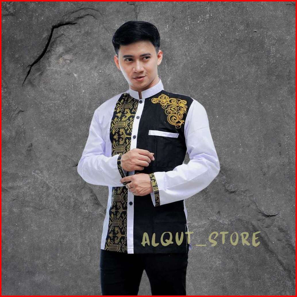 Baju Koko Bordil Modern Kombinasi Batik Lengan Panjang-terbaru Dan Paling Di Cari Terlaris