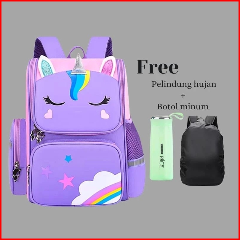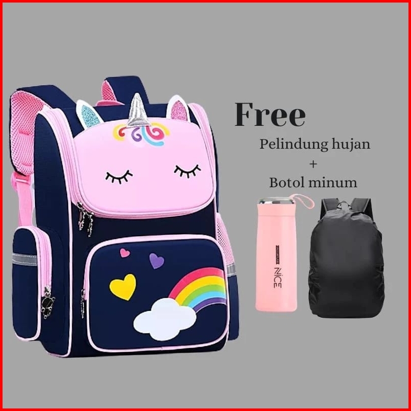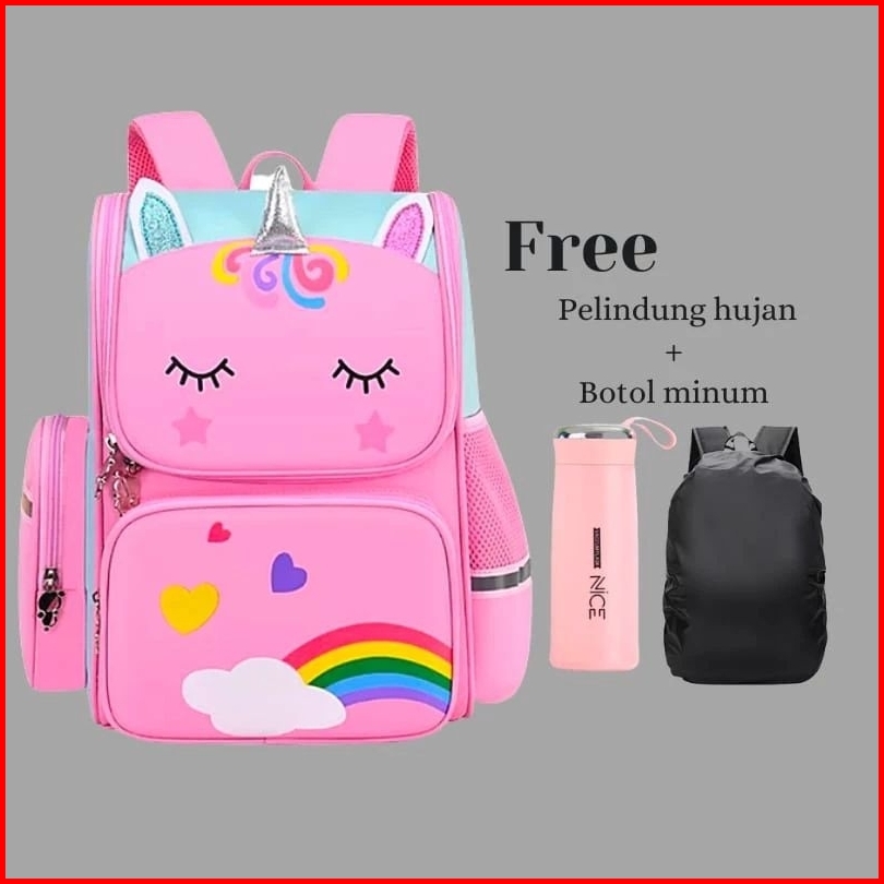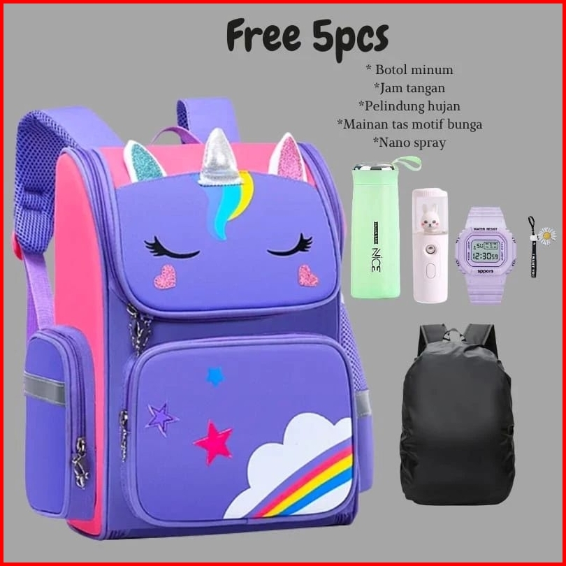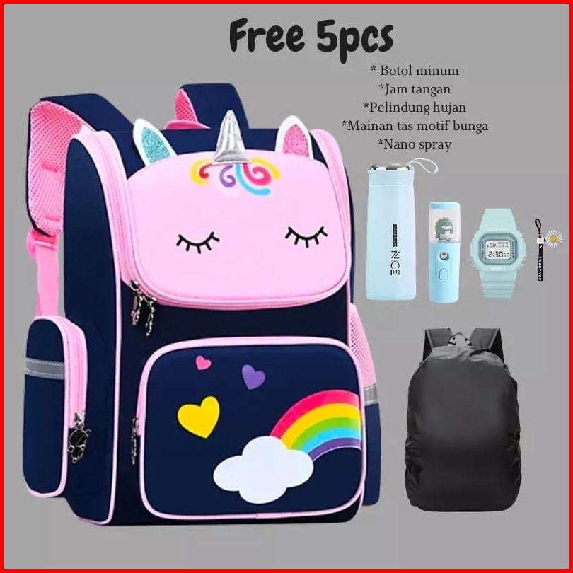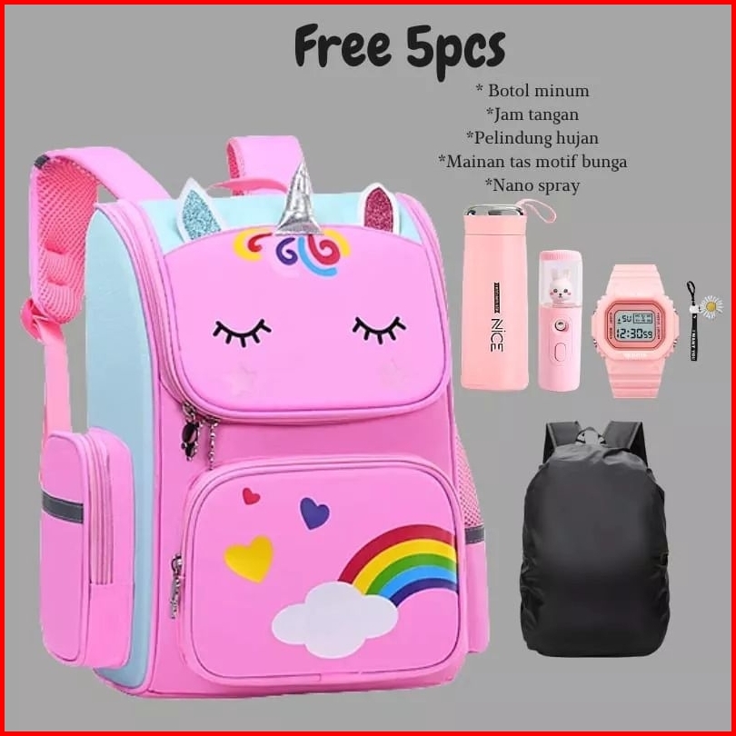 Ransel Anak Karakter Unicorn Pelangi Free 5pcs Tas Sekolah Anak Tk Sd Ransel Backpack Sekolah Anak Perempuan