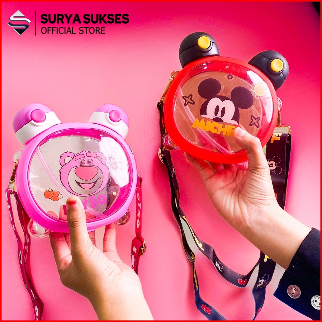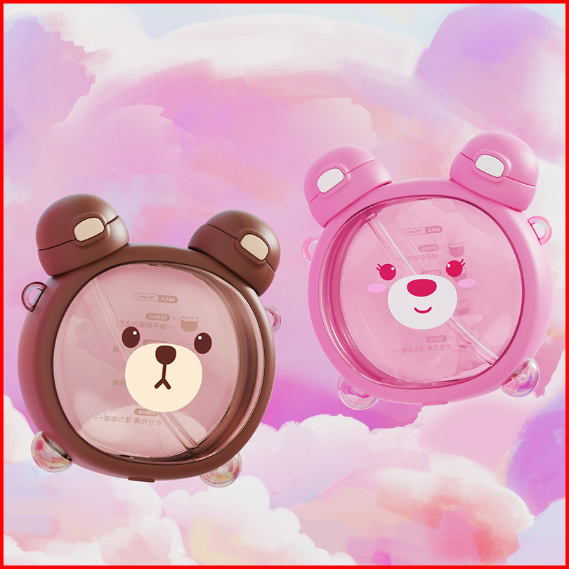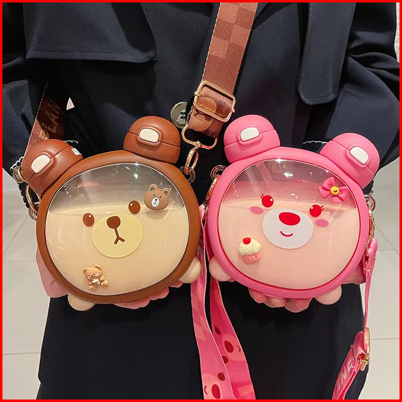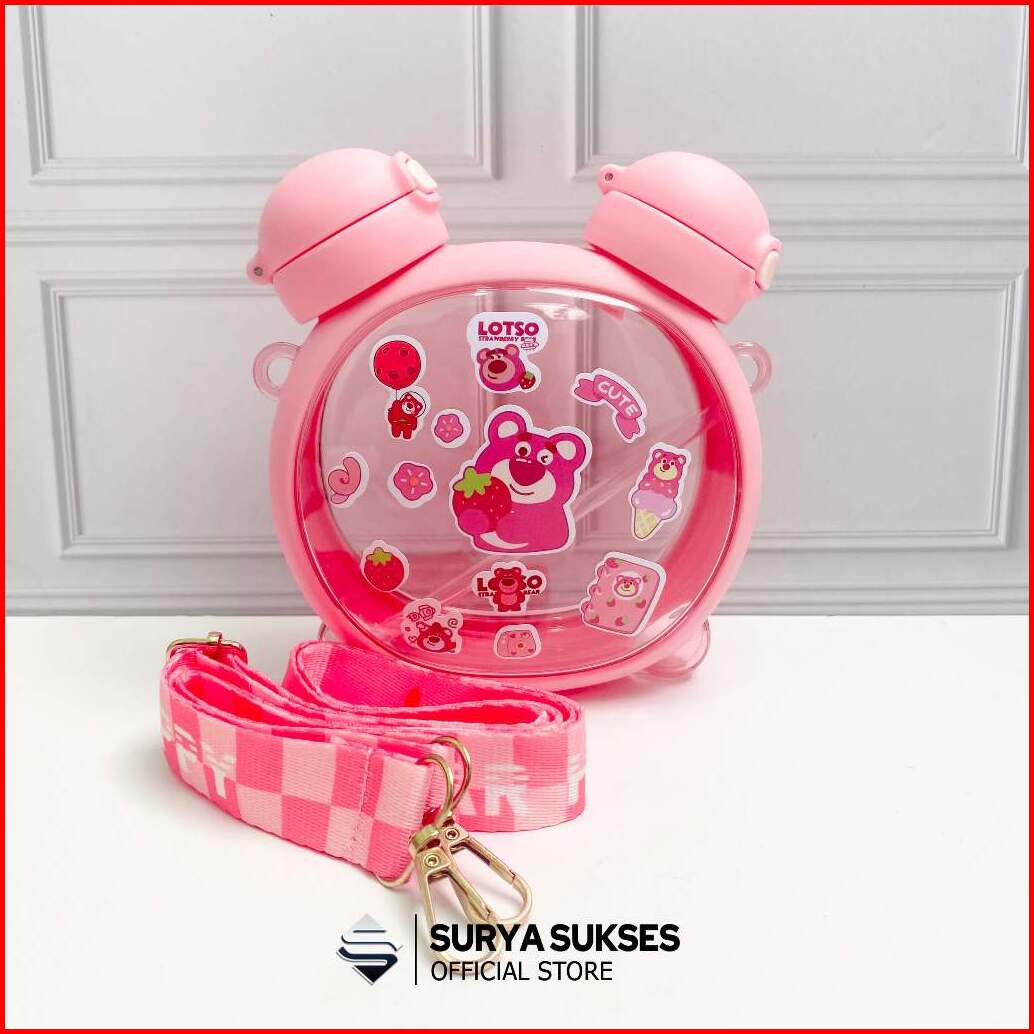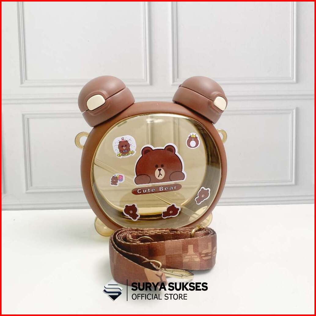 Botol Minum Anak Sekolah 2 In 1 Karakter Beruang Kapasitas 750ml - Cup Bear Free Strap Dan Stiker