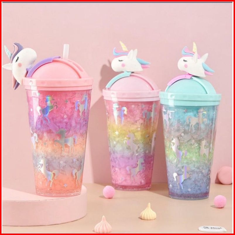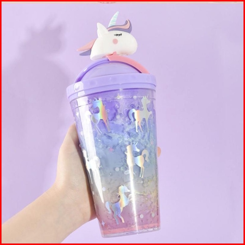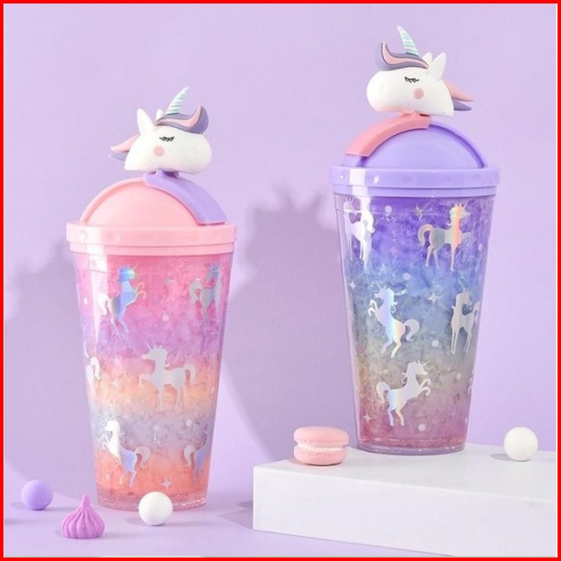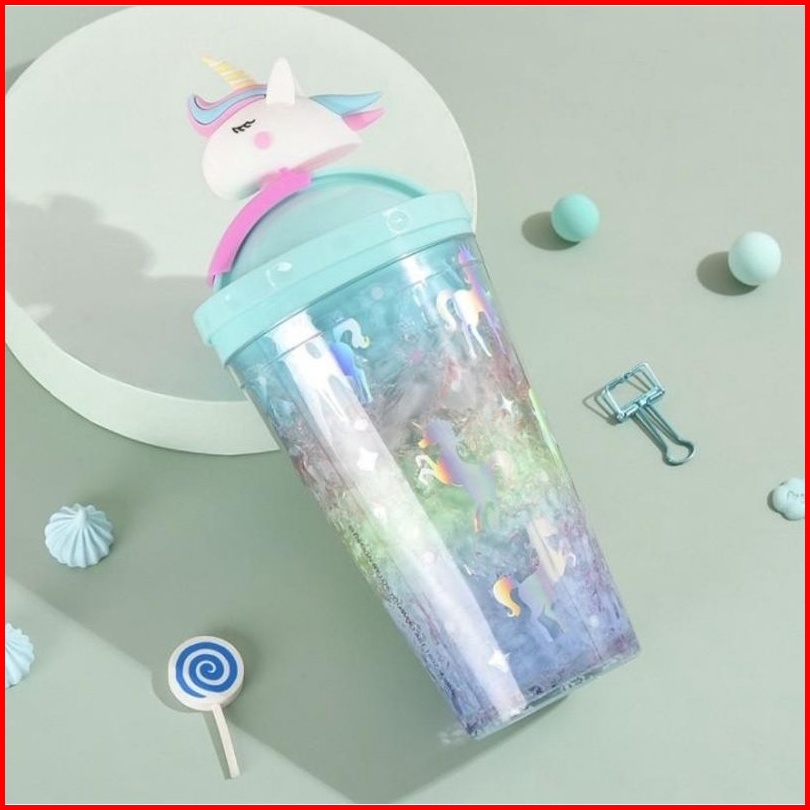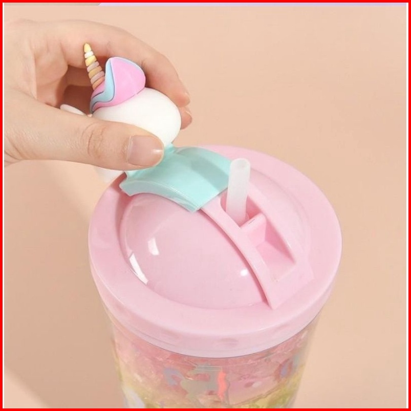 Botol Minum Anak Jerami Tumbler Glitter Uni-corn Premium Quality 450ml Bpa Free