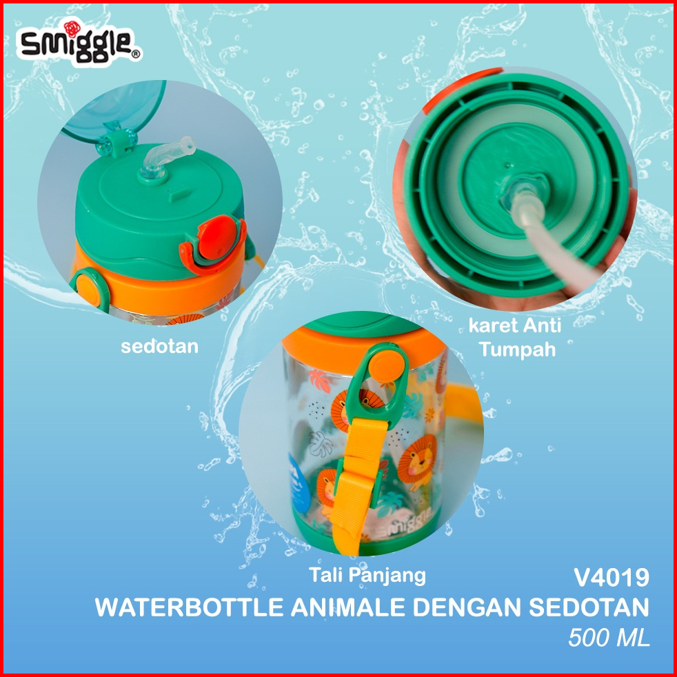 Smiggle Botol Minum Sedotan Anak Animale Waterbottle 500ml Bpa Free 4019