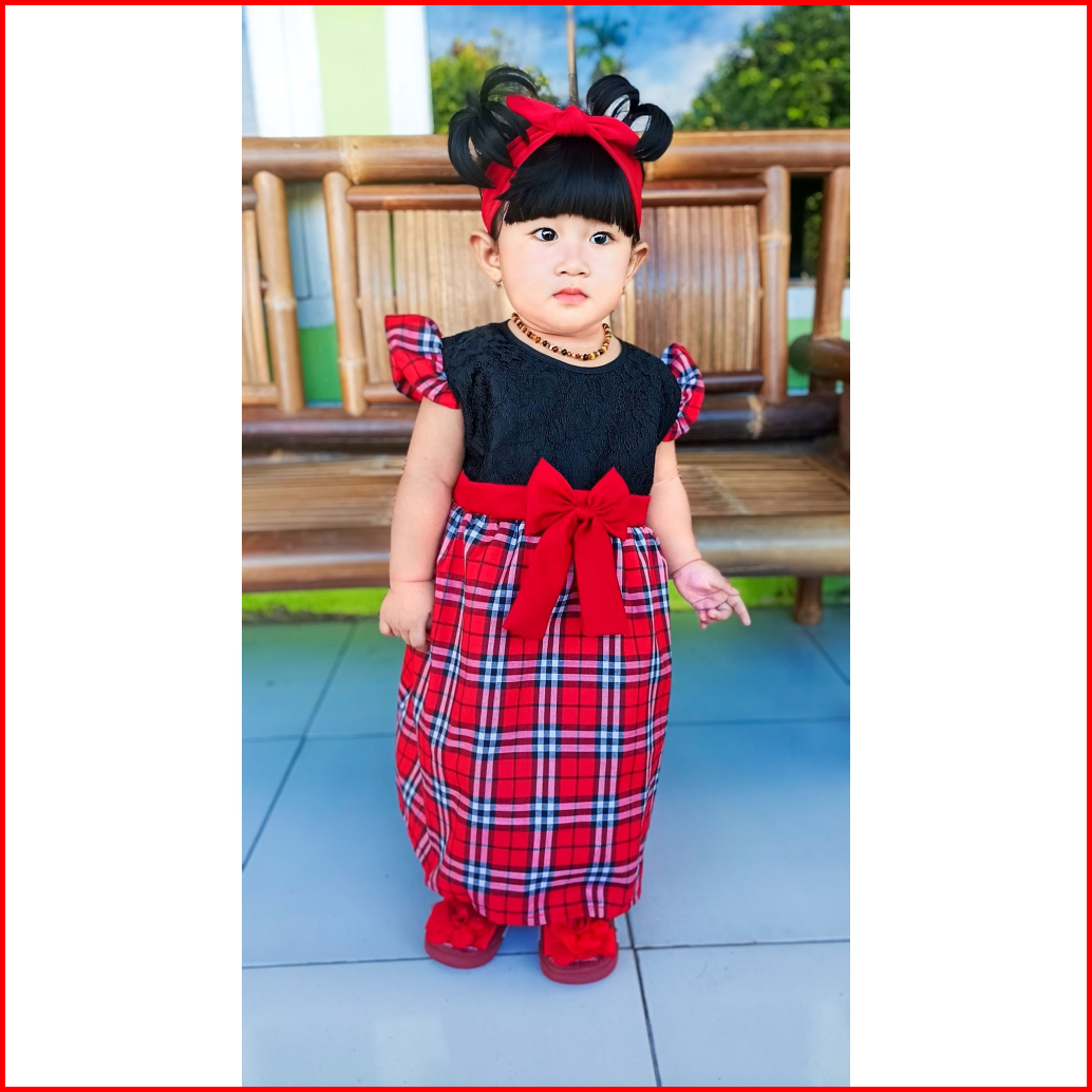 Baju Dress Anak Perempuan 1 Tahun - 3 Tahun Kotak Berry