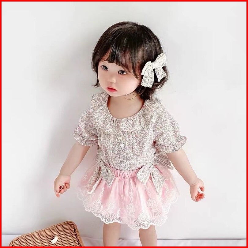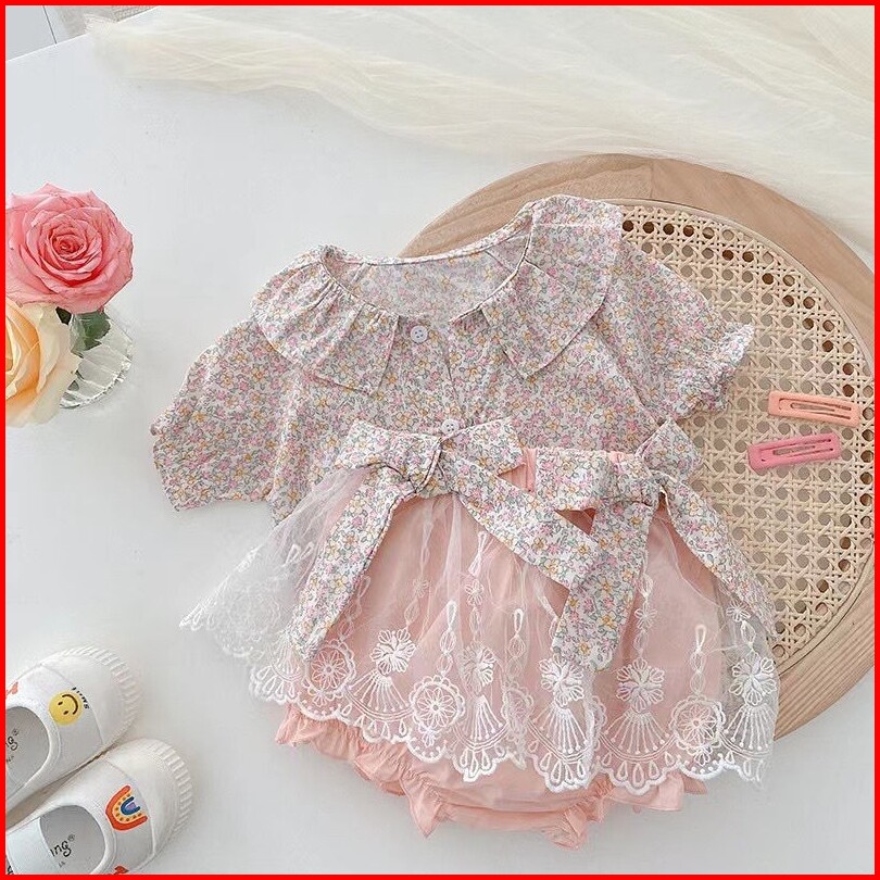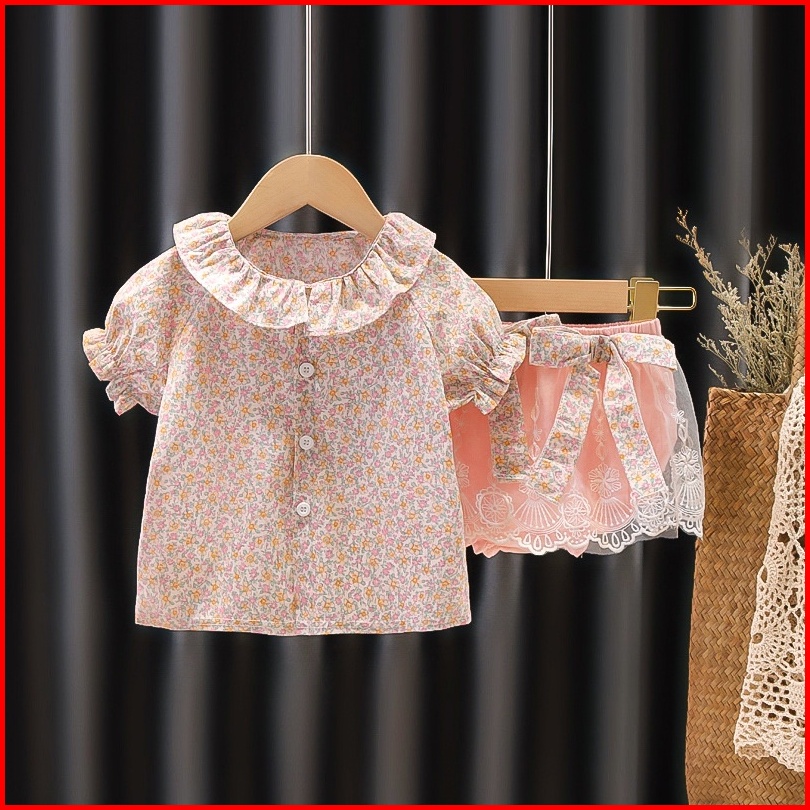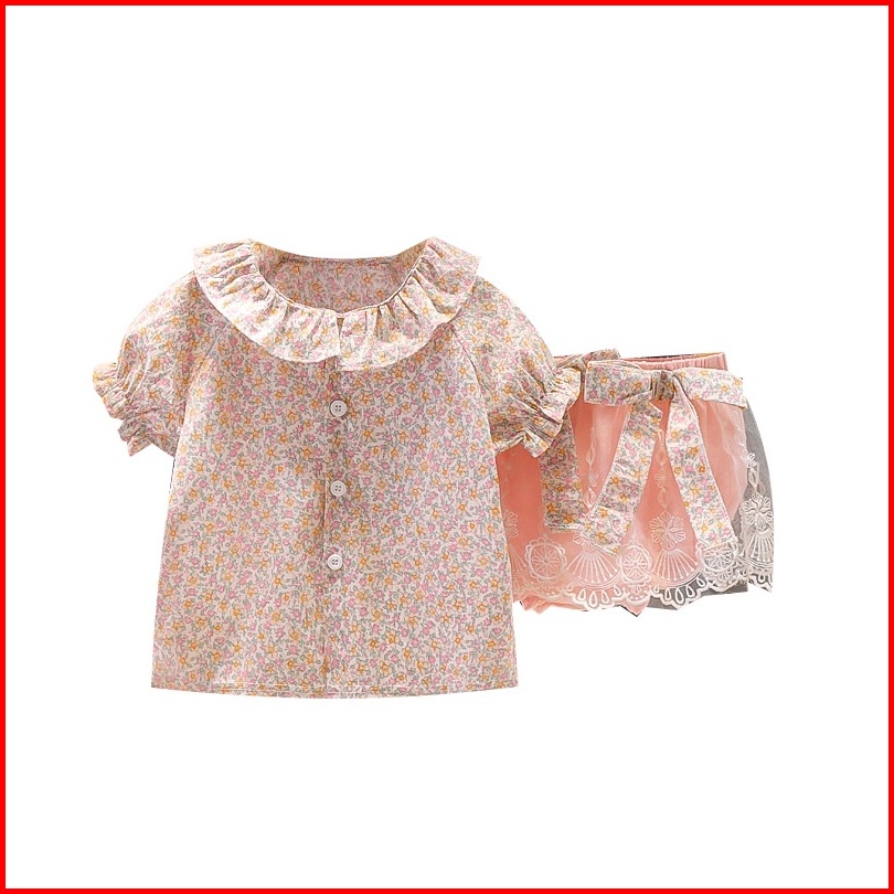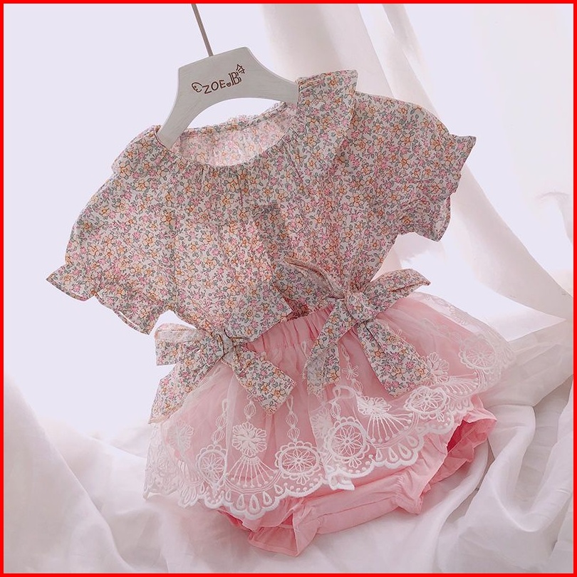Haasya Kids 0-4 Tahun Girls Suit Musim Panas Asing Bayi Perempuan Bunga Pastoral Gaya Putri Pakaian Kentut Lengan Pendek
