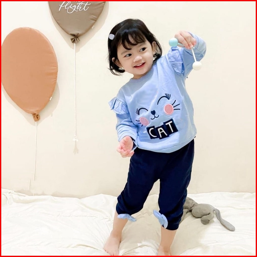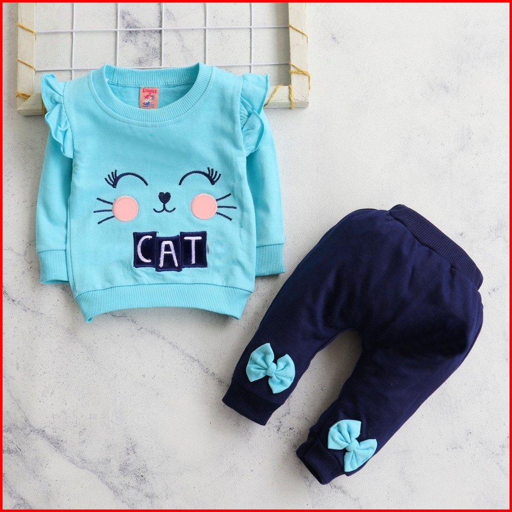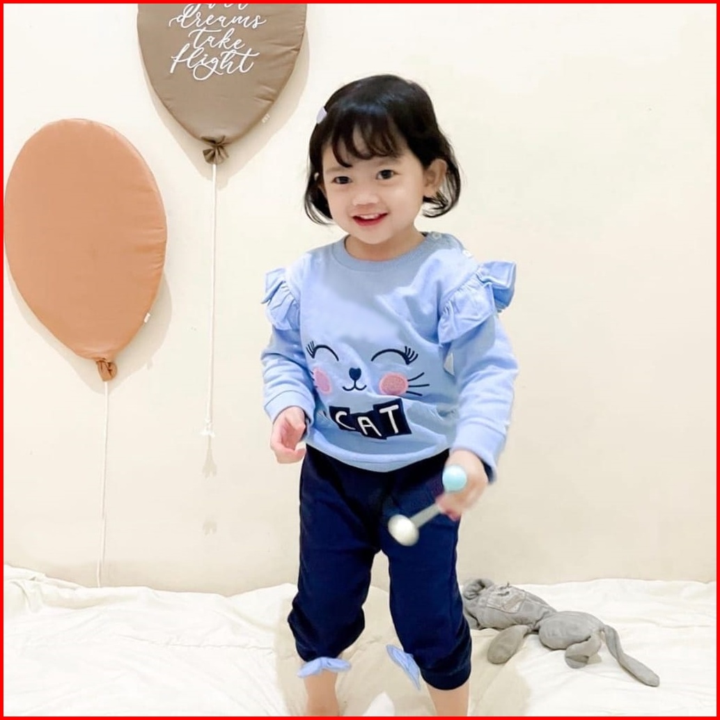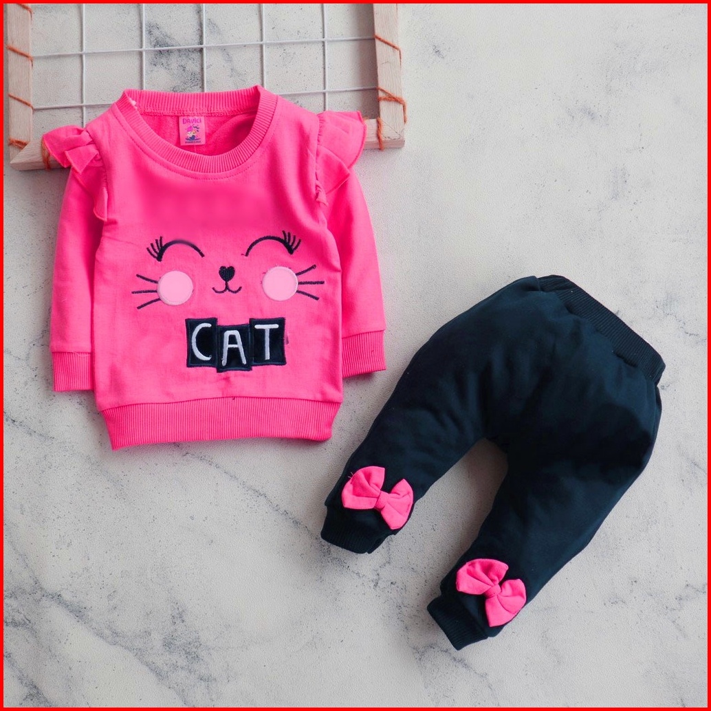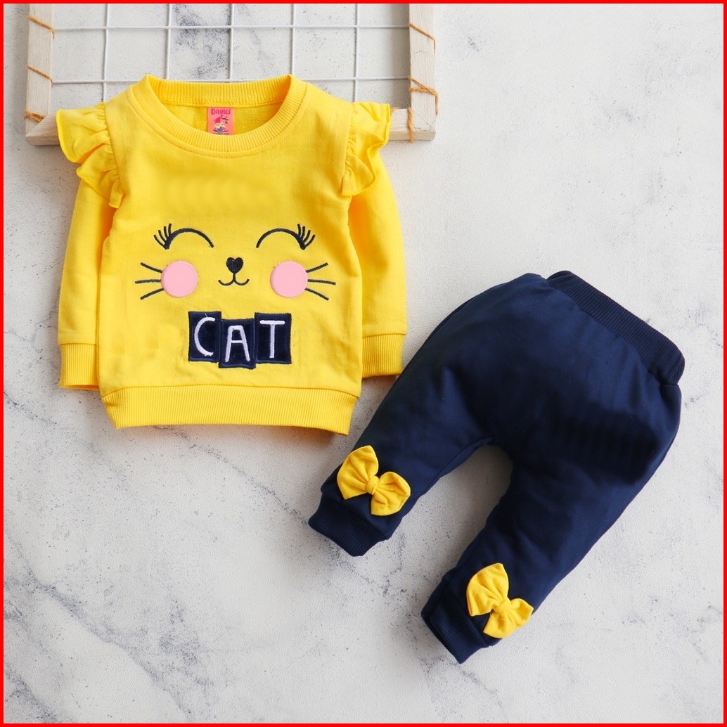 Zahra Oneset Anak Perempuan Popoki Bahan Fleece Pakaian Set Anak Lucu Umur 1-6 Tahun