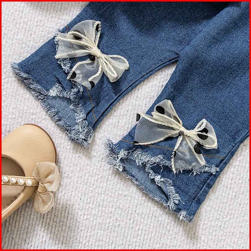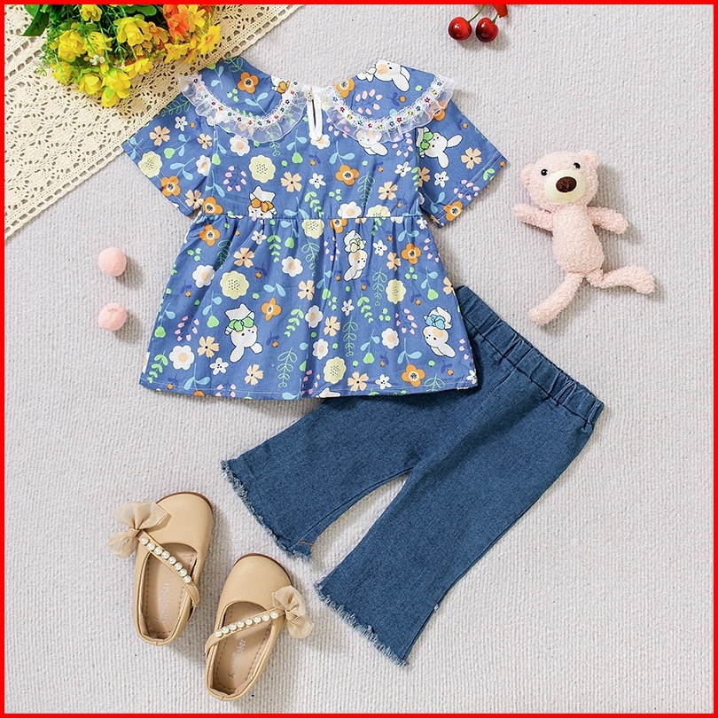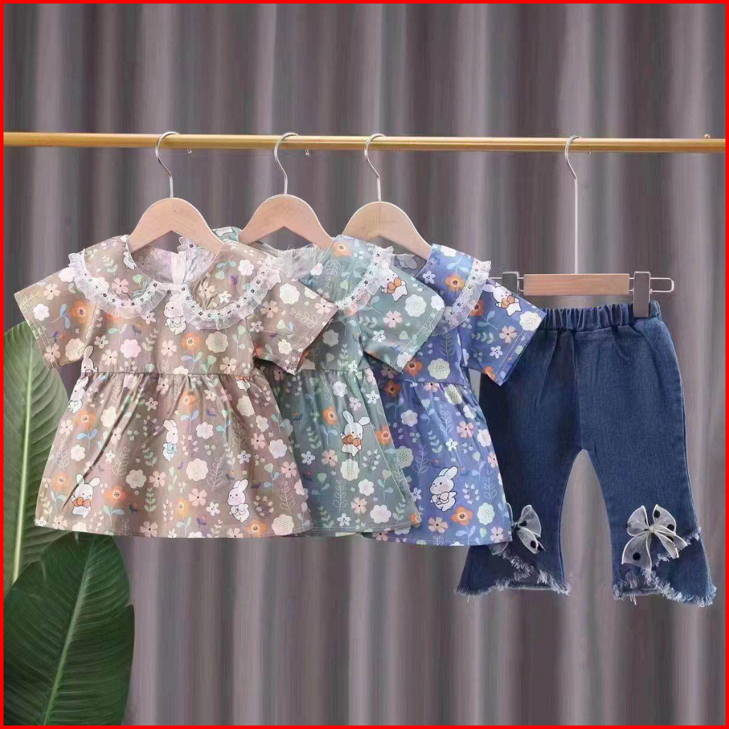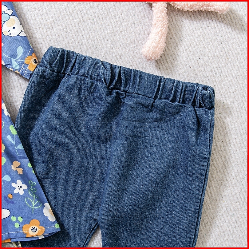 Twinkle Setelan Baju Anak Perempuan Motif Rabbit Flower Dengan Celana Jeans Casual - Usia 1-4 Tahun