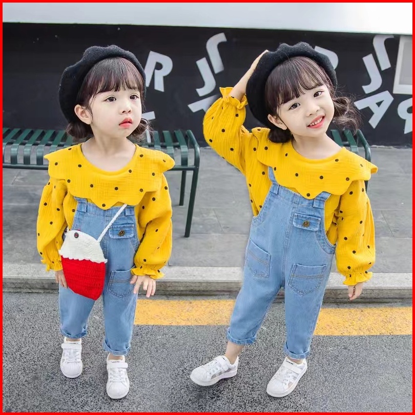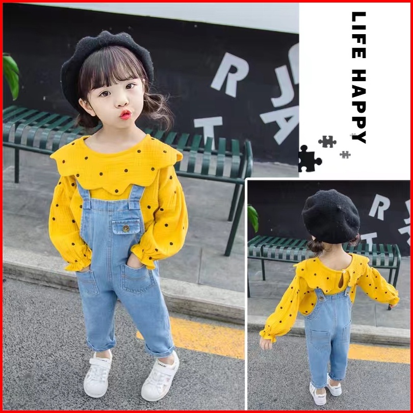 Setelan Set Overall Anak Import Uisa 2-5th Jeans Premium Setelan Baju Import Premium