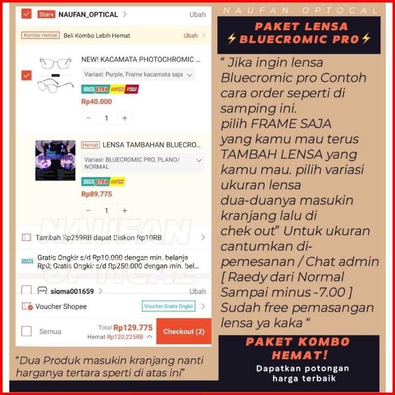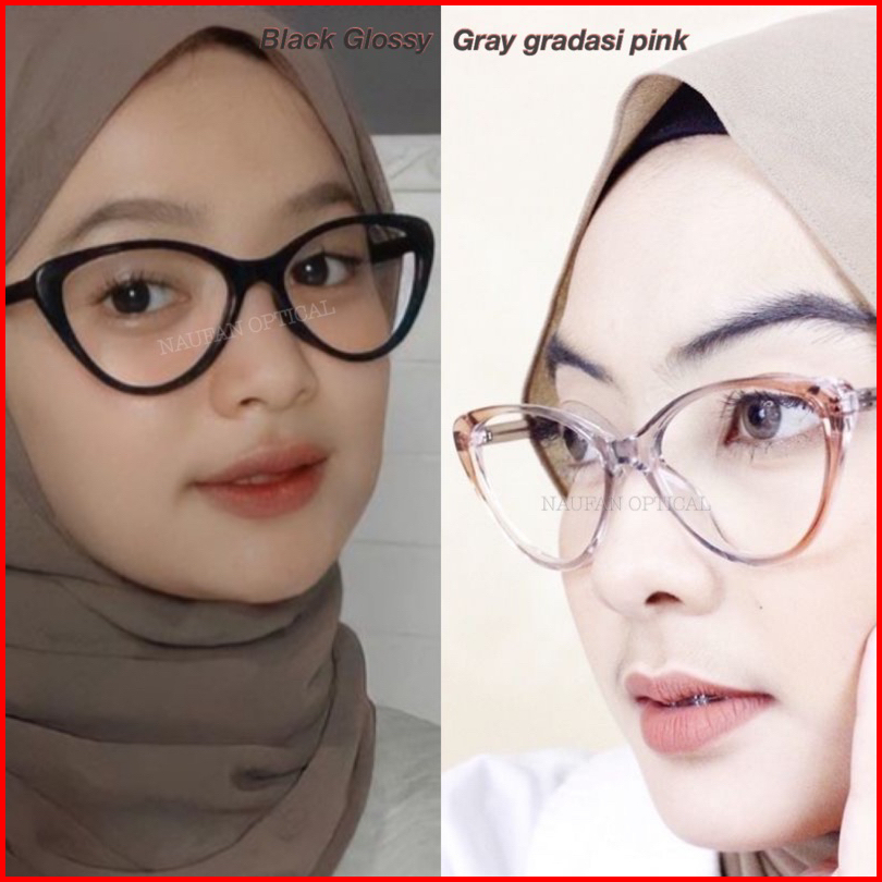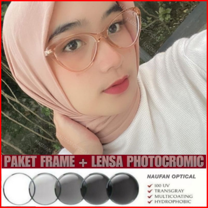 Frame Cat Eye Gaby.rosse Paket Lensa Bluecromic-req Min Cly Atau Mata Normal Anriadiasi - Kacamata Minus Photocromic Ant