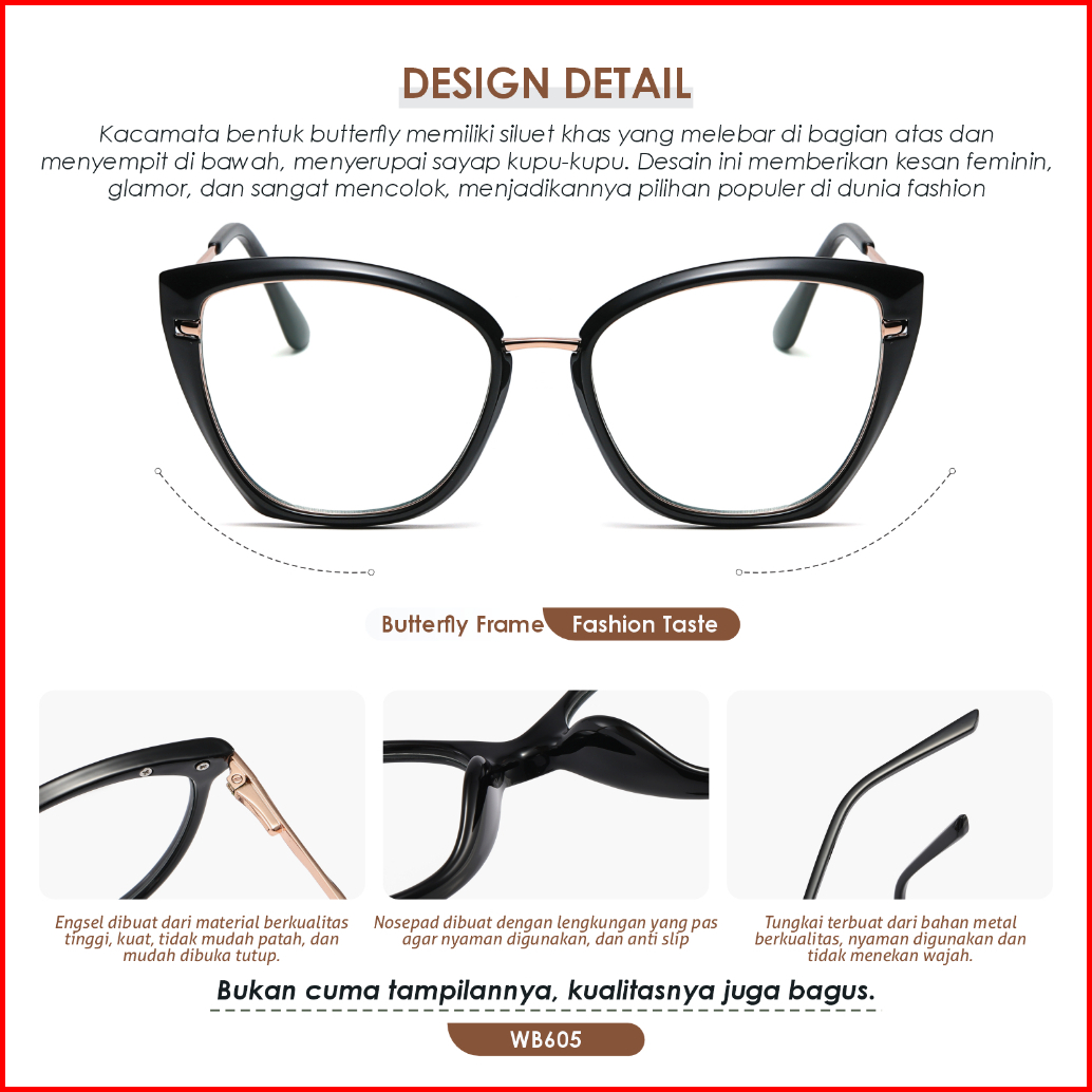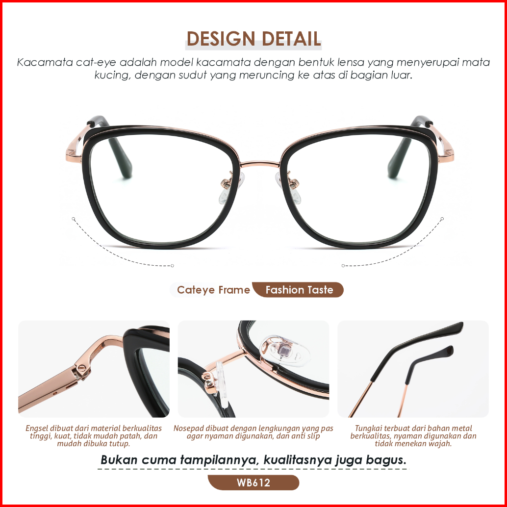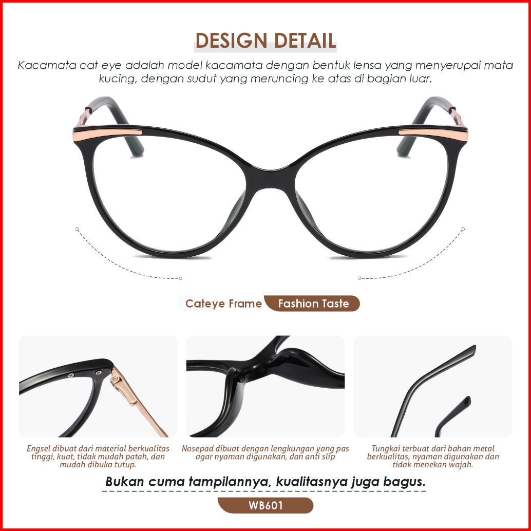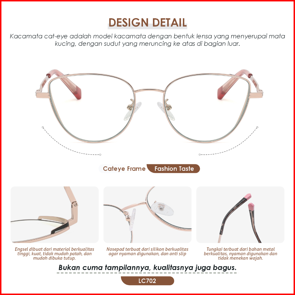 La Chapella Kacamata Wanita Model Cat Eye Minus Anti Blueray Photocromic Bahan Tr-90 Metal Lc702-wb601-wb605-wb612