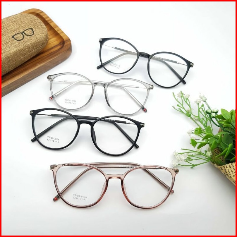 Paket Kacamata Minus Normal Frame 8136 Lensa Photocromic Anti Radiasi Blueray Bluecromic Kacamata Oval Lentur