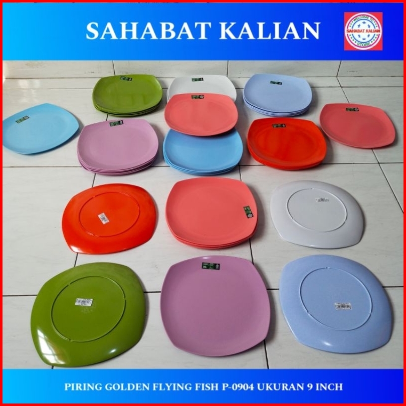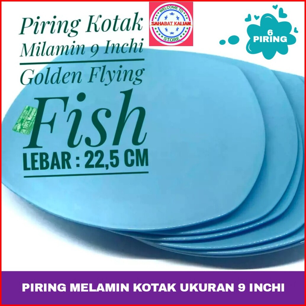 6 Piring Piring Melamin Kotak Golden Dragin Flying Fish P0904