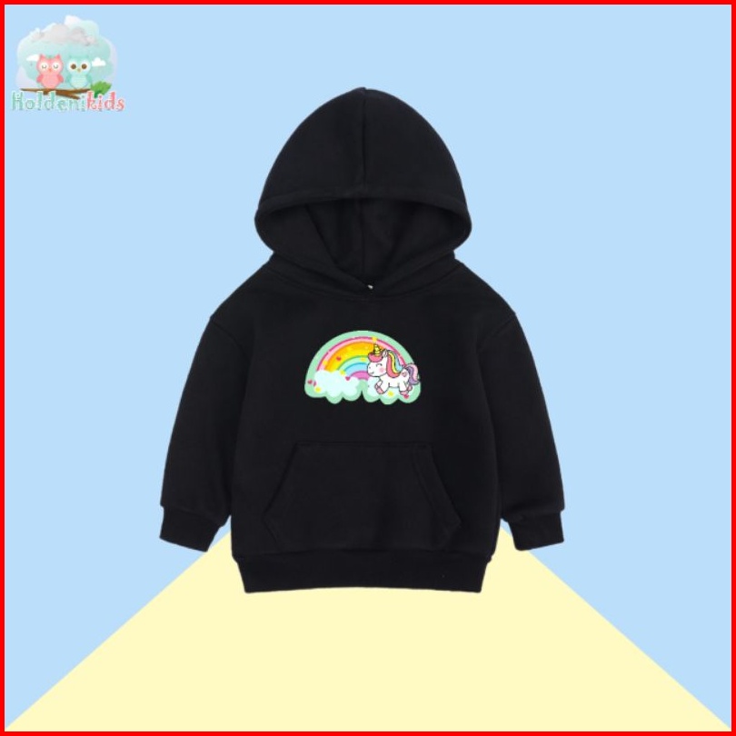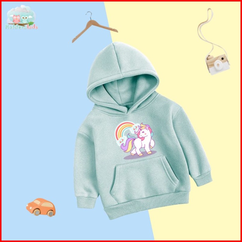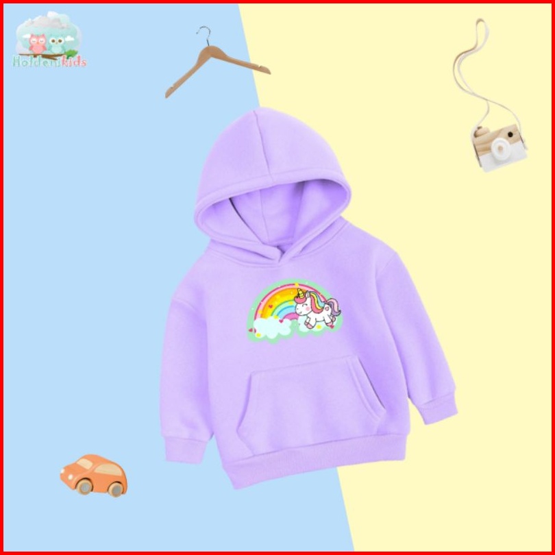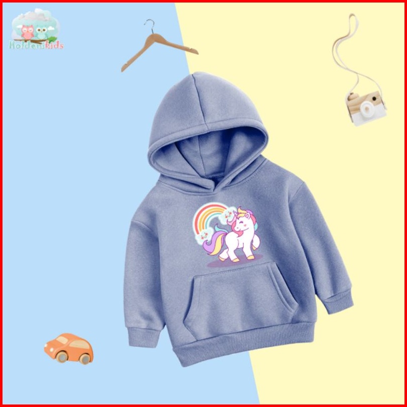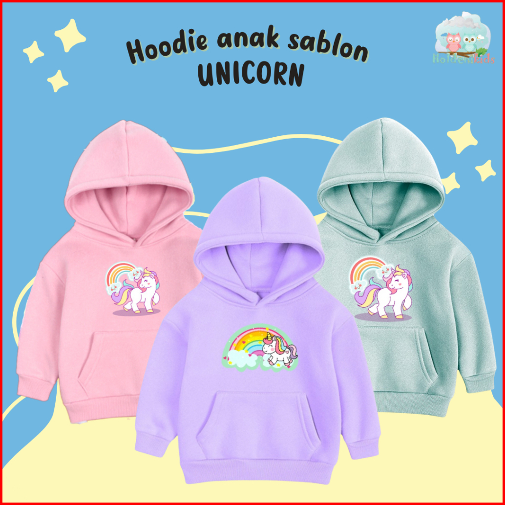 Hoodie Anak Laki Laki Perempuan Cowok Cewek Hoddie Anak Unisex 1-6 Tahun Hodi Gambar Hewan Unicorn Kuda Poni Rainbow Pel